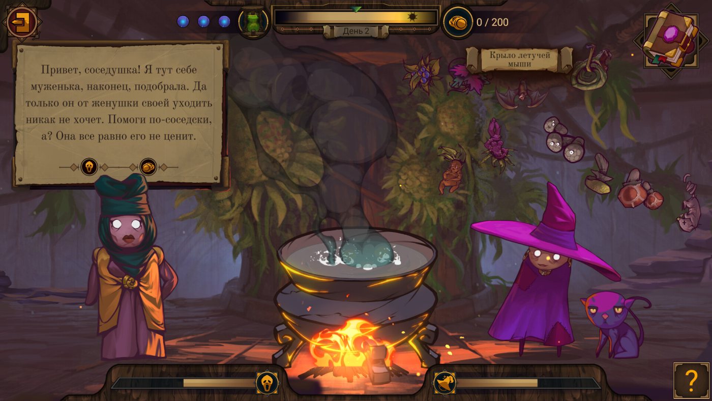 Механика игры проста, но удивительно глубока. В вашем распоряжении — 10 магических ингредиентов и котёл, который может сварганить что угодно: от любовного зелья до смертельного яда. Первые рецепты вам подскажет верный кот-помощник, но настоящую магию вы откроете только методом проб и ошибок. А их будет много: одна неверная трава — и вместо исцеления клиент заработает хвост или вечную икоту. Но главное — последствия. Поможете рыцарю? Он, возможно, спасёт деревню. Обманете трактирщика? Ждите ночного поджога.