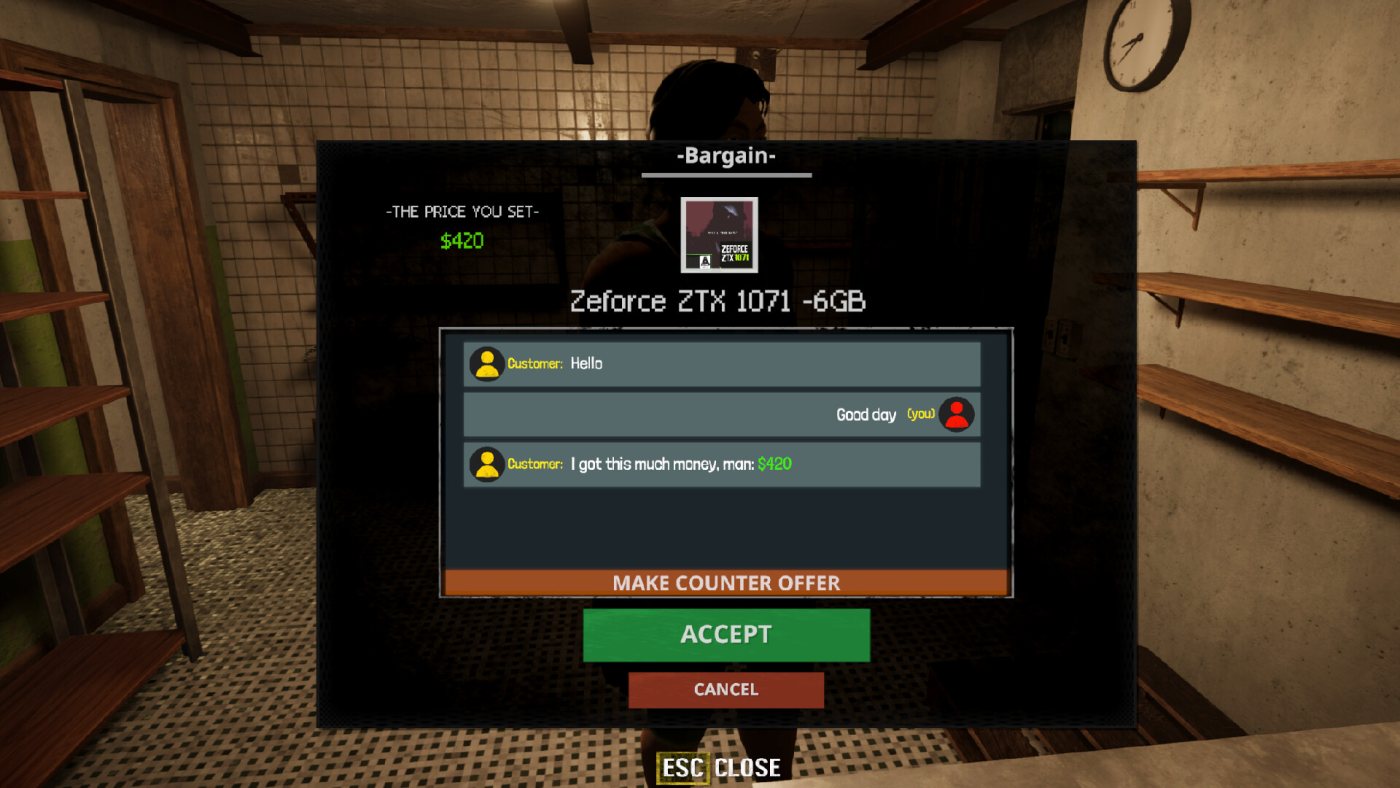 Вас ждут сомнительные авантюры и море веселья от не самых законных деяний. В Computer Repair Shop вы прочувствуете темную сторону данного бизнеса и преуспеете в нем, разрабатывая все новые вариации аферы. Игровой процесс полностью развязывает игрокам руки, даруя возможность как следовать закону и добросовестно выполнять свою работу, так и пуститься во все тяжкие, переступая не только закон, но и нормы морали.