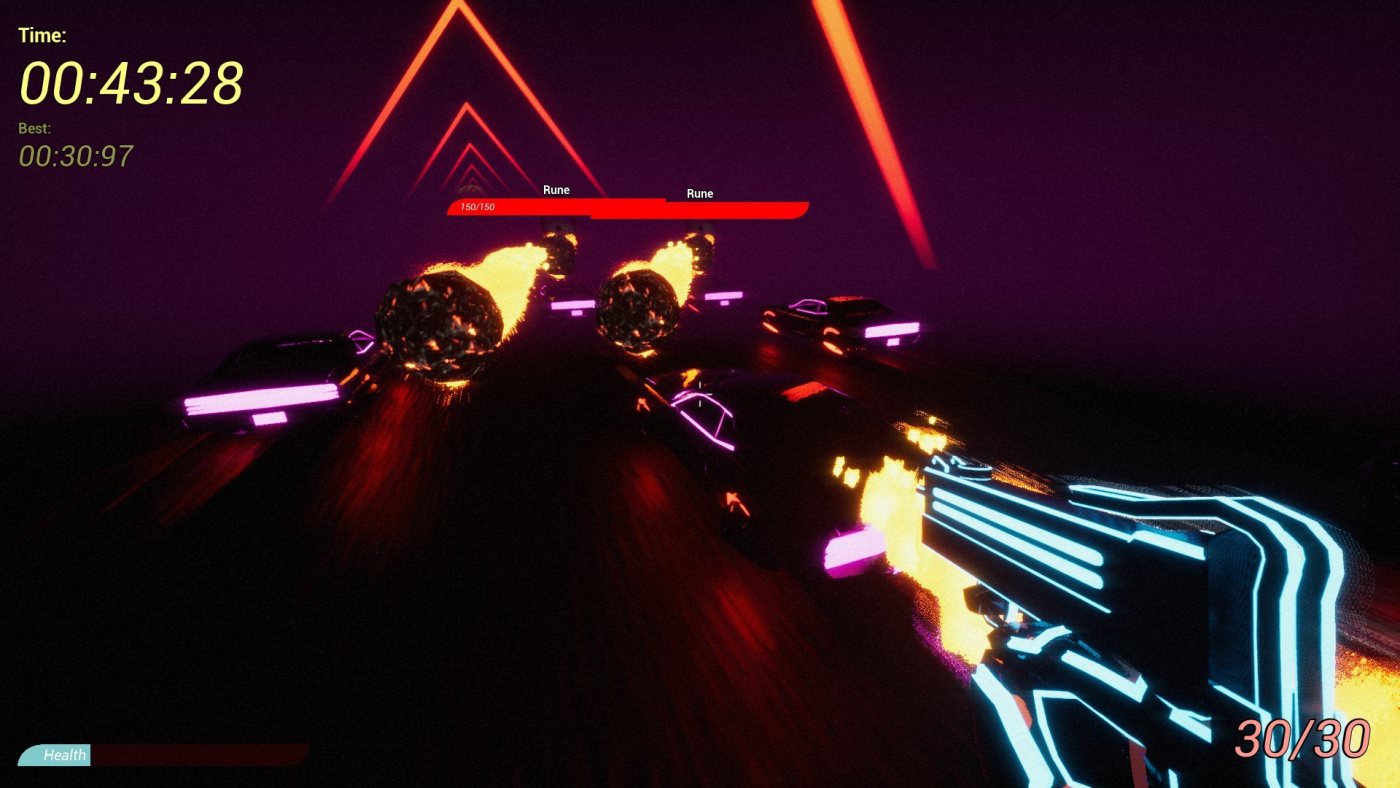 Retro Run — экшен от первого лица, где вам необходимо не только стрелять по противникам, но и быстро передвигаться по стремительно изменяющейся локации. Бегун Неон готов пойти на любые ухищрения лишь бы добраться до легендарного энергетического напитка Раннер, дарующего небывалую выносливость и скорость каждому, кто осмелится его испить. Удастся ли вам добраться до конца забега или вас постигнет участь многих, кто пытался это провернуть до вас?