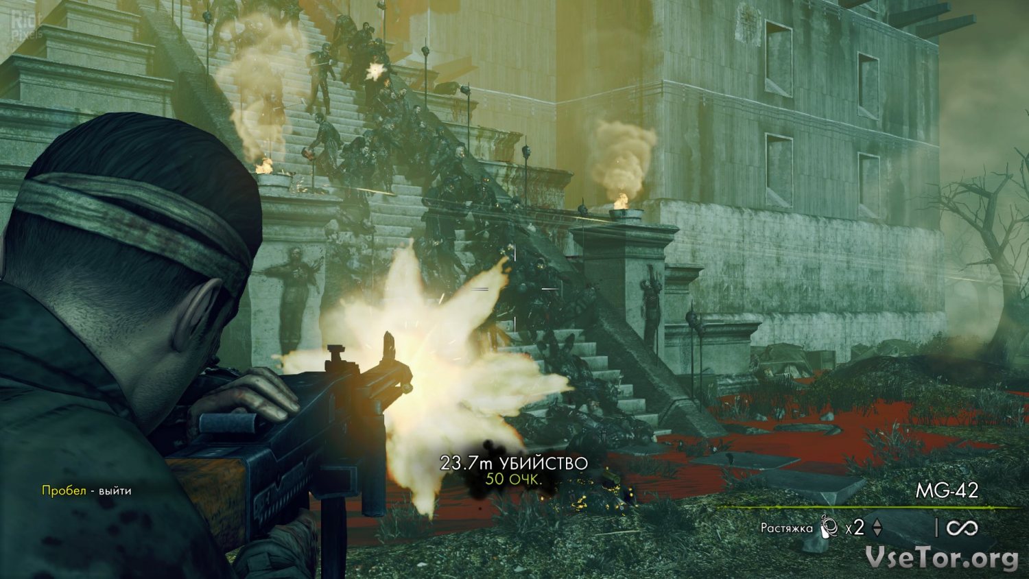 Что до геймплея, так он в Sniper Elite: Nazi Zombie Army 2 сильно отличается от того, чем разработчики радовали игроков в предыдущей части. Во-первых, изменилась атмосфера. Мрачные окровавленные улицы Берлина, огромный окружающий мир, орды зомби, нападающие со всех сторон, полюбившаяся многим механика замедления времени во время «удачного выстрела» - все это позволит вам по полной проникнуться апокалиптическим Берлином и игрой в целом.