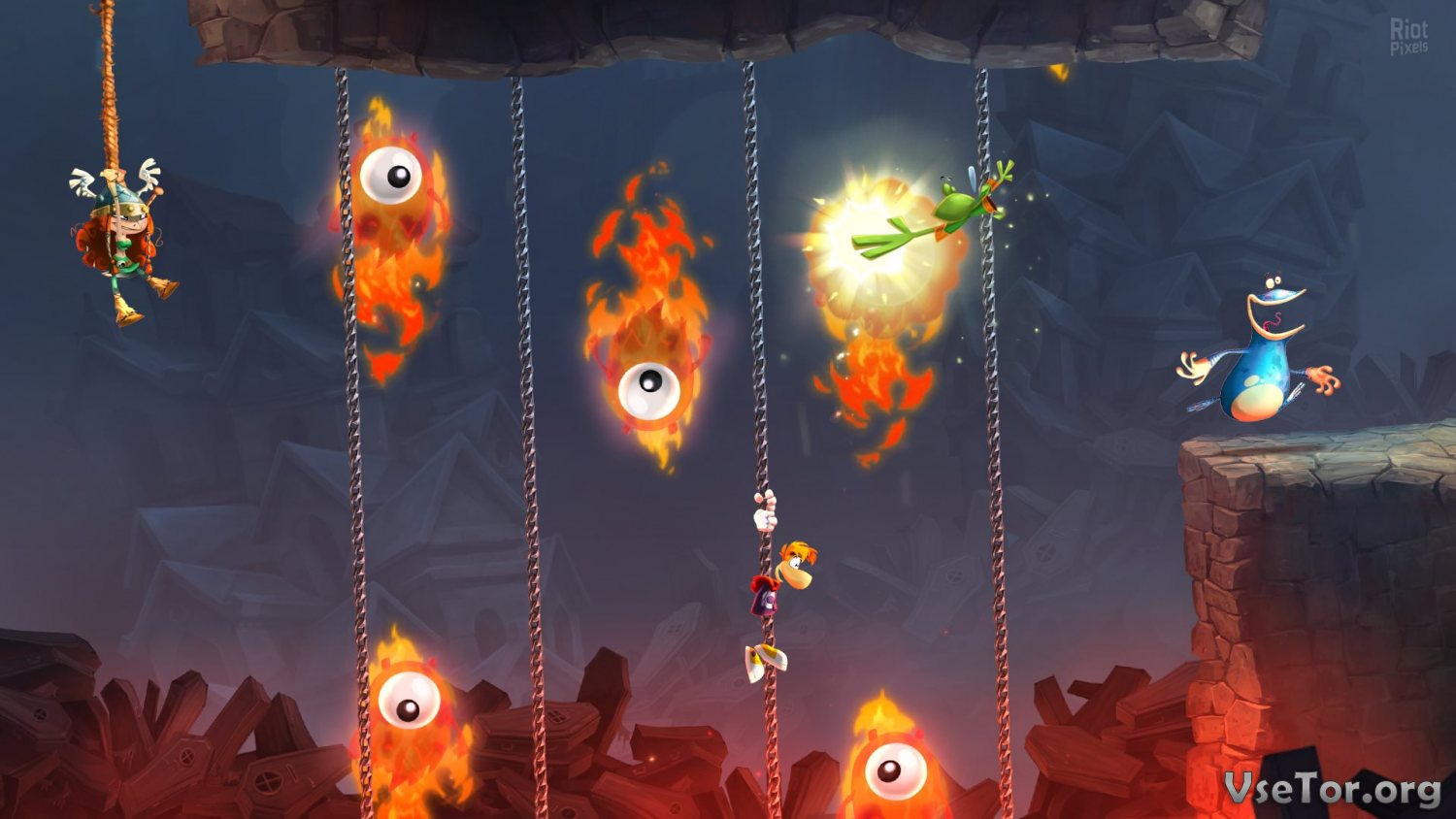 Ну а схема построения глав осталась прежней. Так, обычно главы делятся на уровни, среди которых обязательно есть уровень, рассчитанный на исследование окружения, уровень со сражением, и уровень с погоней. При этом в конце каждой главы открывается музыкальный уровень, в котором игрок должен придерживаться в своих действиях музыкального ритма. У нас вы можете скачать Rayman Legends торрент последнюю версию бесплатно на компьютер.
