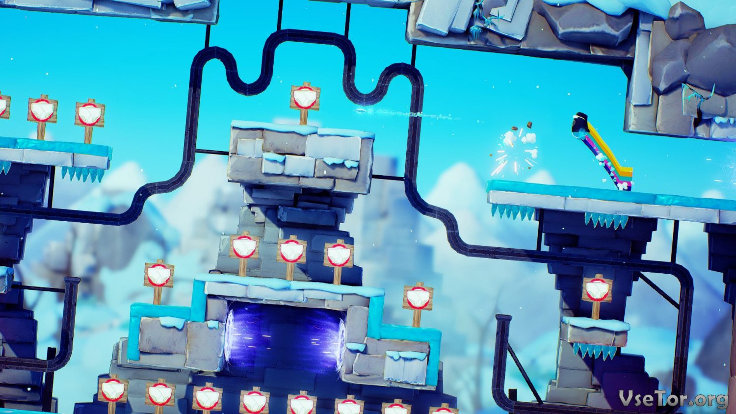 Суть игрового процесса заключается в следующем – выбираете пухленького персонажа из тех, что доступны, и отправляетесь на уровень-арену, где ас будут ждать ваши друзья или другие персонажи под управлением ИИ, и пытаетесь выживать. Казалось бы, все довольно-таки просто, но на самом деле эта игра столь же сложная, сколь и веселая. Каждый уровень-арена, где вы будете сражаться с другими персонажами, представляет собою комплекс ловушек и преград, которые будут все время мешать вам передвигаться. Где-то будут огромные шипы, где-то гигантские стены, а где-то и вовсе перекладины, которые в неожиданный момент будут подниматься – вариантов много, и погибнуть вы можете от всего, как от падения в пропасть, так и от удара о шипы.