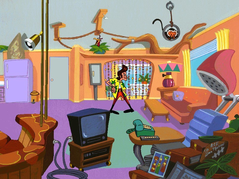 Вам предстоит посетить подводную лодку капитана Немо, оказаться в Баварии и даже в Вулкании, поэтому пристегните ремни, приключение начинается прямо сейчас! При первом запуске Ace Ventura бросается в глаза приятная рисовка и созданные вручную анимации, что создают уникальную атмосферу за счет которой игра и стала классической своего жанра.