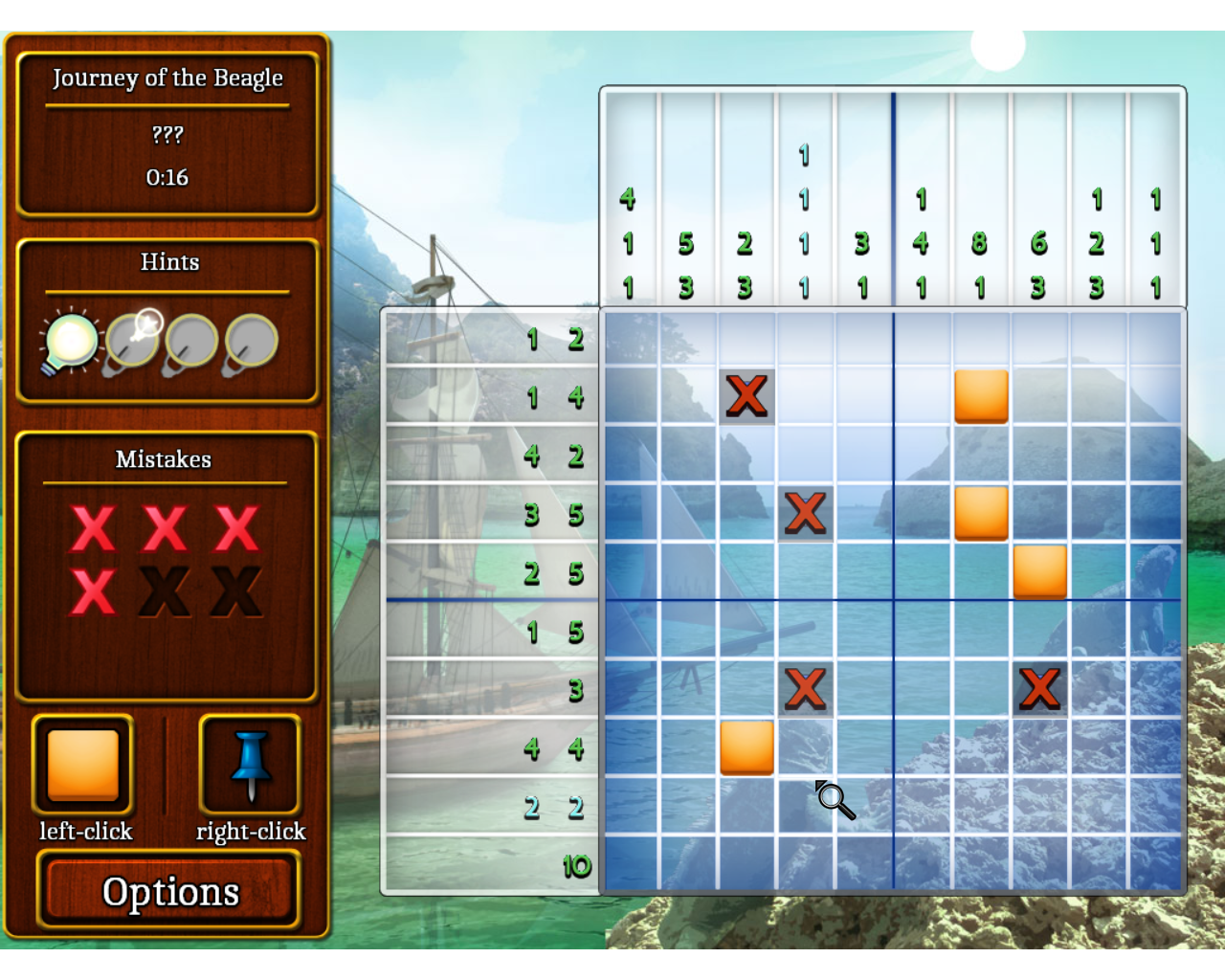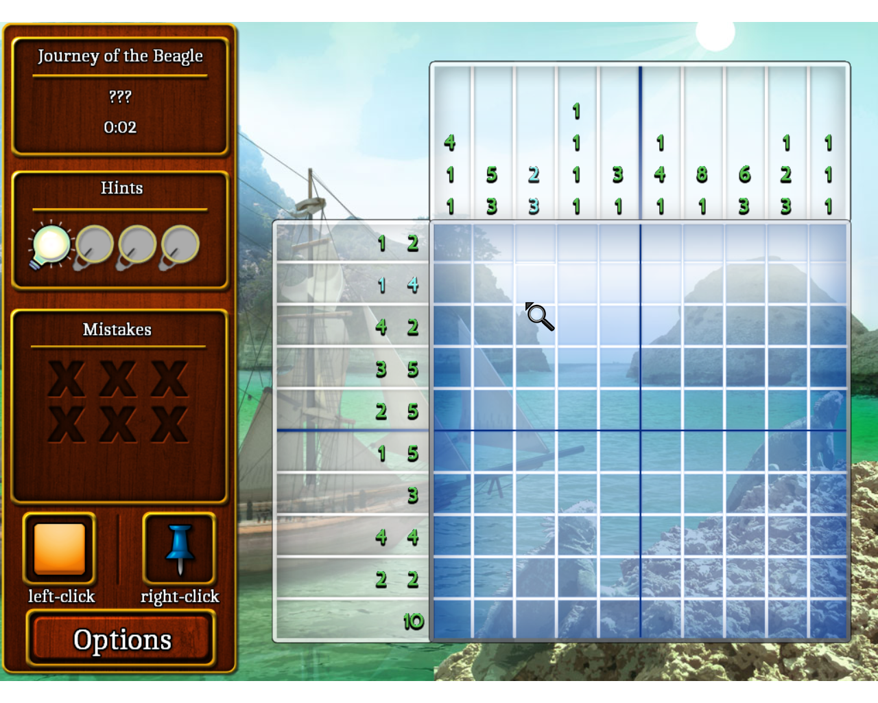 Со старта вас встретит обучение на примере простых картинок, но если кратко, то вам необходимо на предложенном поле закрашивать ячейки в соответствии с расположенными сверху и слева цифрами. Они обозначают количество закрашенных подряд полей, поэтому самое время опробовать свои силы в деле. У нас вы можете скачать World Mosaics 7 торрент последнюю версию бесплатно на компьютер.