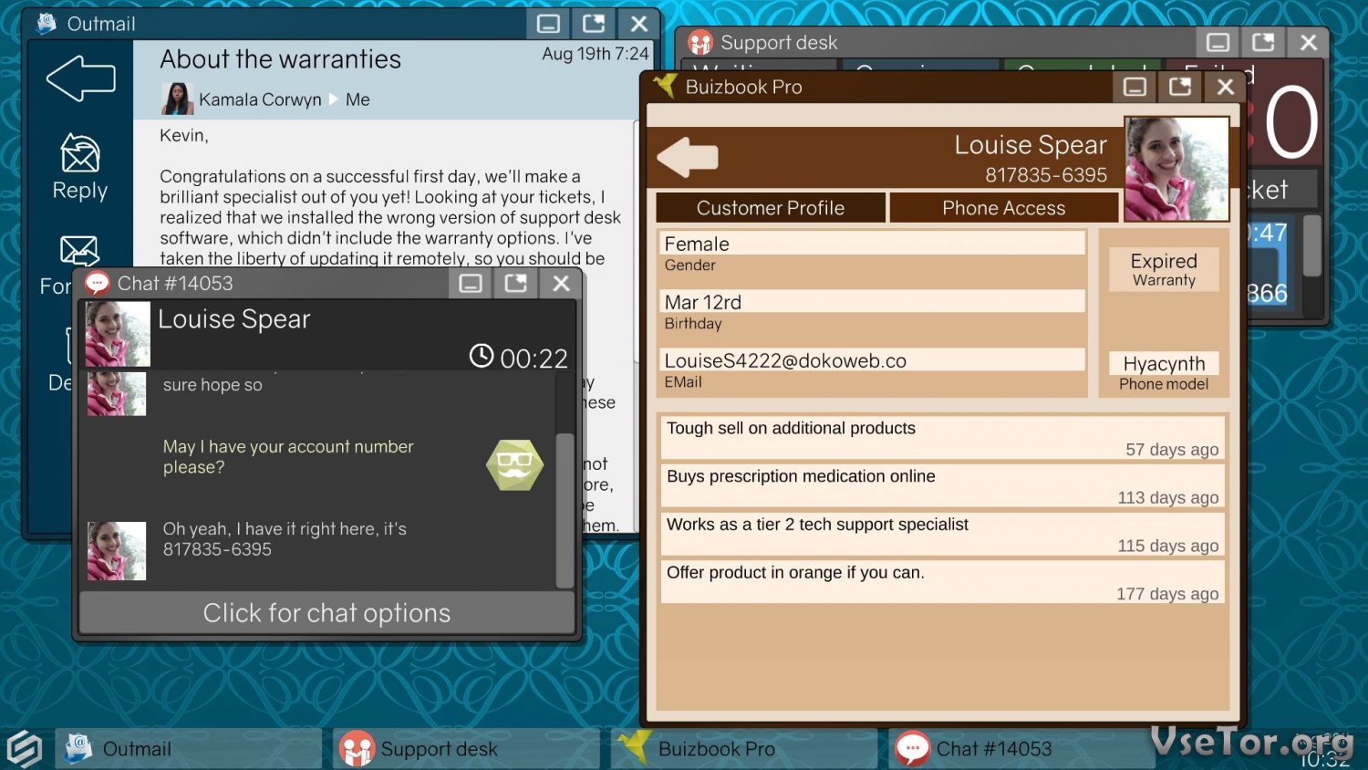 Итак, по сюжету вы будете специалистом технической поддержки, и вашей основной задачей будет взаимодействие с клиентами. Вы окажитесь за виртуальным компьютером и начнете работать. Ваша главная задача – помогать клиентам в разрешении самых разных проблем. Кто-то будет нуждаться в обычной технической помощи, кто-то попросит разобраться с какими-то техническими ошибками компьютера, а возможно вам и вовсе попадется «чайник», не имеющий никакого представления о том, что делает.