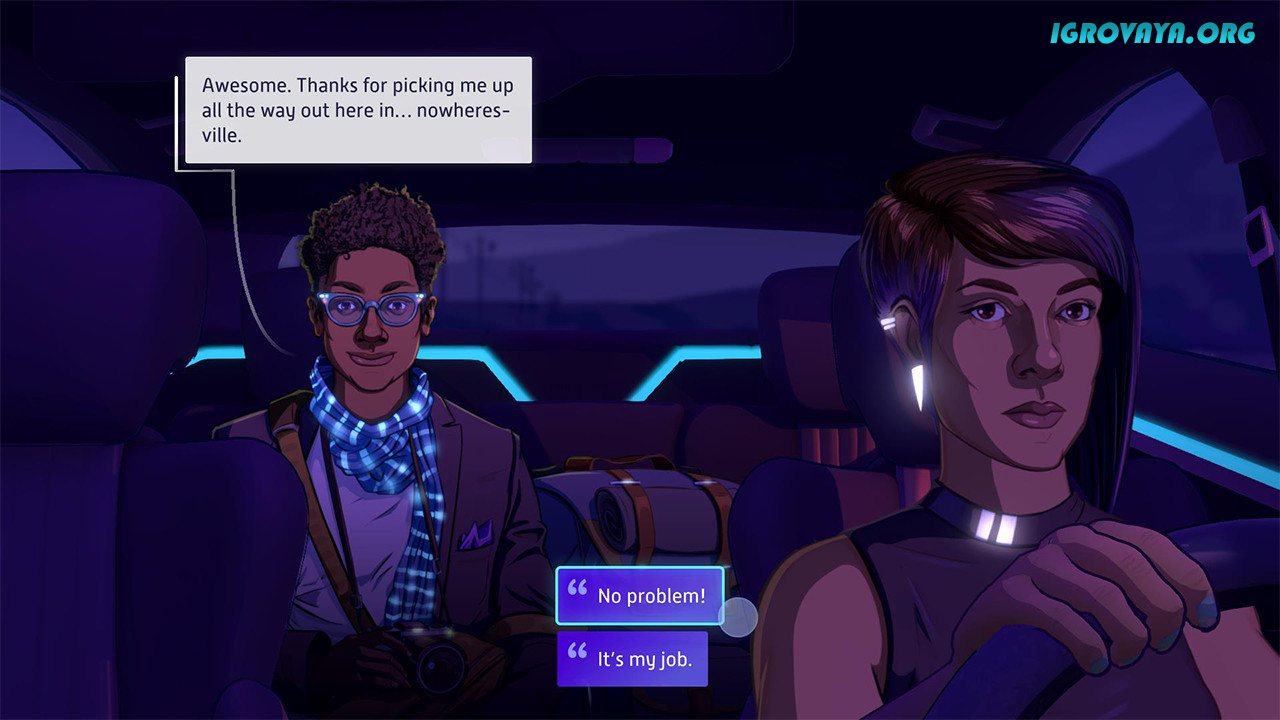 По ходу выполнения заданий и развоза пассажиров, вы узнаете из диалогов много интересного, сможете познакомиться с разными людьми, узнать об их позициях и отношении к происходящему, разузнать о прошлом главной героини и сделать свои выводы обо всем. А в конце концов вы сможете оказать еще и влияние на весь город. Попробуйте сыграть в Neo Cab, и поймете, как трудно оставаться человеком в мире, захваченном компьютерами. У нас вы можете скачать Neo Cab торрент последнюю версию бесплатно на компьютер.