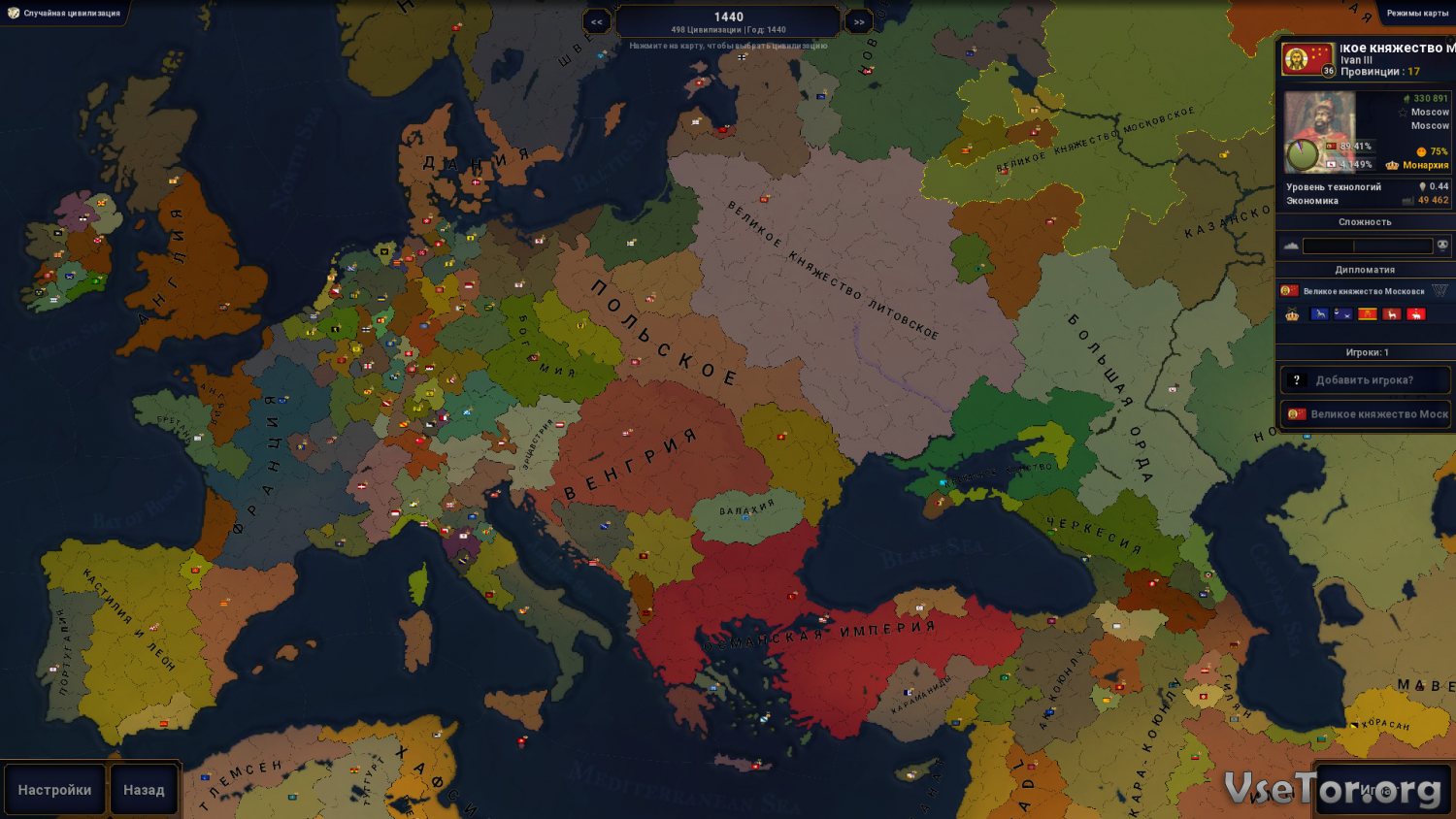 Здесь вы можете создавать целые регионы. Захватывать вражеские провинции, строить торговые и дипломатические отношения с разными нациями и цивилизациями, развиваться так, как захотите и полностью переписать историю нации. А если захотите, сможете и вовсе изменить мир, настроив городов и по-новому разделив земли той же Европы, к примеру.