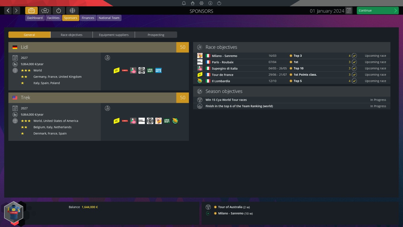 Скачайте Pro Cycling Manager 2024 торрентом и обеспечьте своих велогонщиков лучшим оборудованием, чтобы шансов на победу у них было больше, и вы не подвели спонсоров, ведь они также могут разорвать контракт, если ваши результаты будут плохими. Вы сможете сотрудничать со многими спонсорами, если сможете заинтересовать их, ведь некоторые требуют особые условия, а вам остается выбрать лучшее для команды. У нас вы можете скачать Pro Cycling Manager 2024 торрент последнюю версию бесплатно на компьютер.