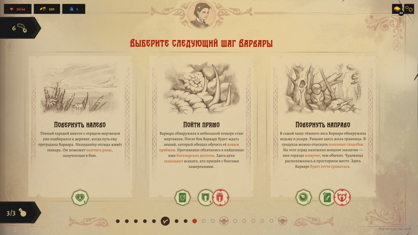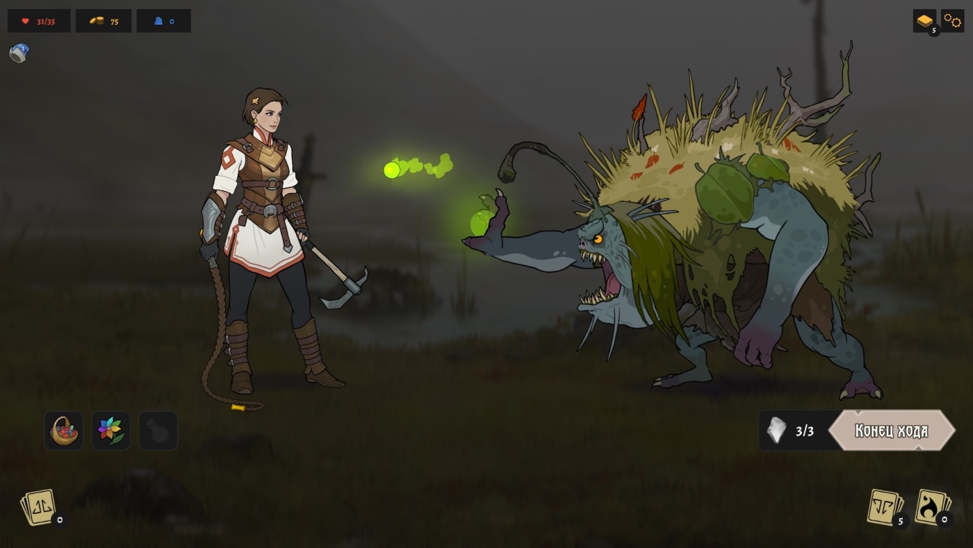 Игра — это как разложить пасьянс на острие ножа. Вы собираете колоду: удары, уловки, чары — всё в ваших руках. После каждой схватки — три тропы: одна сулит золото, другая — бой, третья — подвох. Просто? Не совсем: каждый герой играет по-своему, и карты у них разные. Варвара таскает врагов по полю, Добрыня стоит как скала. Боссы заставляют думать — тут не просто бить, а выстраивать план. Путь к финалу долгий: пройдите всеми героями, чтобы открыть последнюю главу. Каждое приключение — новое, хоть карты и мелькают знакомые.