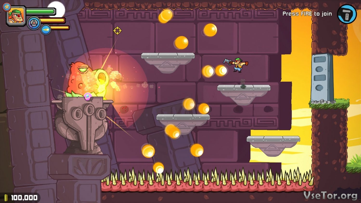 Что же до игрового процесса в целом, так он основывается на путешествиях по многочисленным локациям и уничтожении монстров. Причем, путешествовать вы сможете как в одиночку, так и в компании с другом – есть кооперативный режим на двоих. В остальном же Greedy Guns, это типичный платформер, в котором в первую очередь все будет зависеть от вашей реакции, смекалки, и способности быстро реагировать на любые изменения. У нас вы можете скачать Greedy Guns торрент последнюю версию бесплатно на компьютер.
