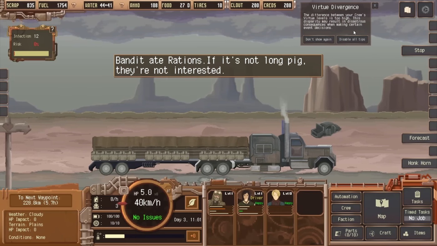 В пути по Пыльным землям вас будет ждать множество событий, неизвестные сигналы, которые будут вести вас к себе, орды зомби, враги, пытающиеся обокрасть вас, и многое другое. Станьте мастером в торговле и захватите эту нишу в Пустошах, ведь тогда вы сможете побороться за власть и диктовать свои условия. У нас вы можете скачать Dustland Delivery торрент последнюю версию бесплатно на компьютер.