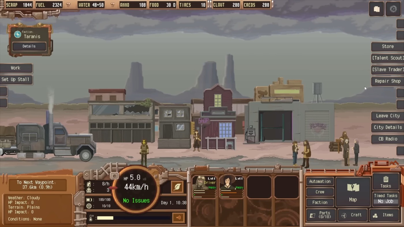 Dustland Delivery – прыгайте в свой защищенный грузовик и начинайте ваше путешествие. Данный симулятор выживания позволит вам создать город, который способен стать столицей Пыльных земель. Двигайтесь по бескрайним просторам земель, торгуйте, заключайте выгодные контракты, наберите команду, способную помочь в вашем нелегком деле. Делегируйте полномочия и создайте лучший город для жизни в условиях постапокалипсиса.
