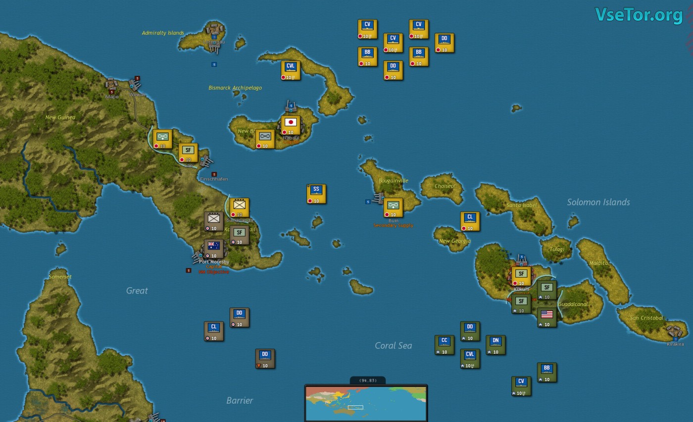 Strategic Command WWII: War in the Pacific проведет вас через шесть компаний, каждая из которых позволит вам проявиться себя в стратегических боях на Тихоокеанском поле, где вашей целью будет завоевание территории или прохождение определенных заданий. Вы сможете использовать аэродромы в своих сражениях, что является новинкой серии. Следите за показателями, которые показывают ваш прогресс победы, а также позволяет оценить шансы соперников. Если подготовленные разработчиком задания вам наскучат или вы справитесь со всеми, то можете свободно создавать свои сценарии и продолжать игру. У нас вы можете скачать Strategic Command WWII: War in the Pacific торрент последнюю версию бесплатно на компьютер.