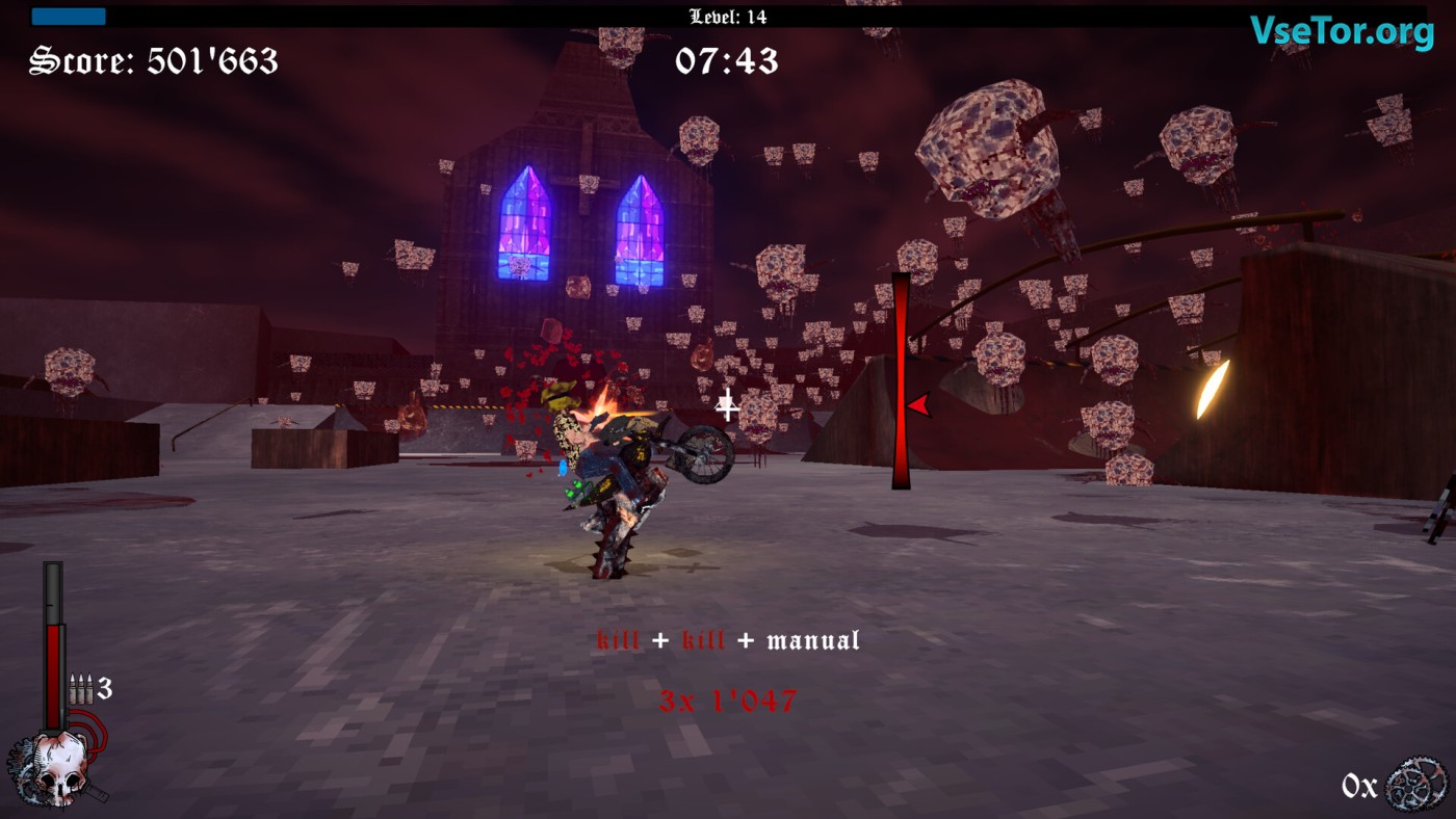 Если вы готовы ко всем ужасам, которые вам предлагает Motordoom, тогда скачивайте игру и вперед. Набирайте очки, выполняя комбо, собирайте демонические дары и используйте их против сильных врагов, ведь преимущество в бою всегда необходимо. Во время боя вы сможете замедлять время, стрелять во врагов и параллельно выполнять самые безумные и отвратительные трюки. У нас вы можете скачать Motordoom торрент последнюю версию бесплатно на компьютер.