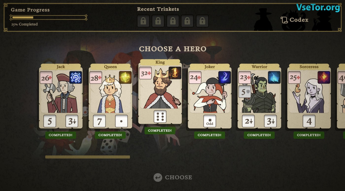 Игра даёт вам кучу возможностей. На выбор – больше 35 героев, и у каждого свои умения. Один может лечиться кубиками, другой – усиливать броски. По пути подбираете спутников, которые добавляют свои кубики и трюки. Между боями можно зайти в лавку – прикупить шмотки, чтобы кубики падали удачнее или враги валились быстрее. А ещё подземелья тут каждый раз новые – не угадаешь, что выскочит на следующем уровне: то мелкие гоблины, то босс с тремя головами. Проиграли? Ничего страшного – дают бонусы для следующего захода.