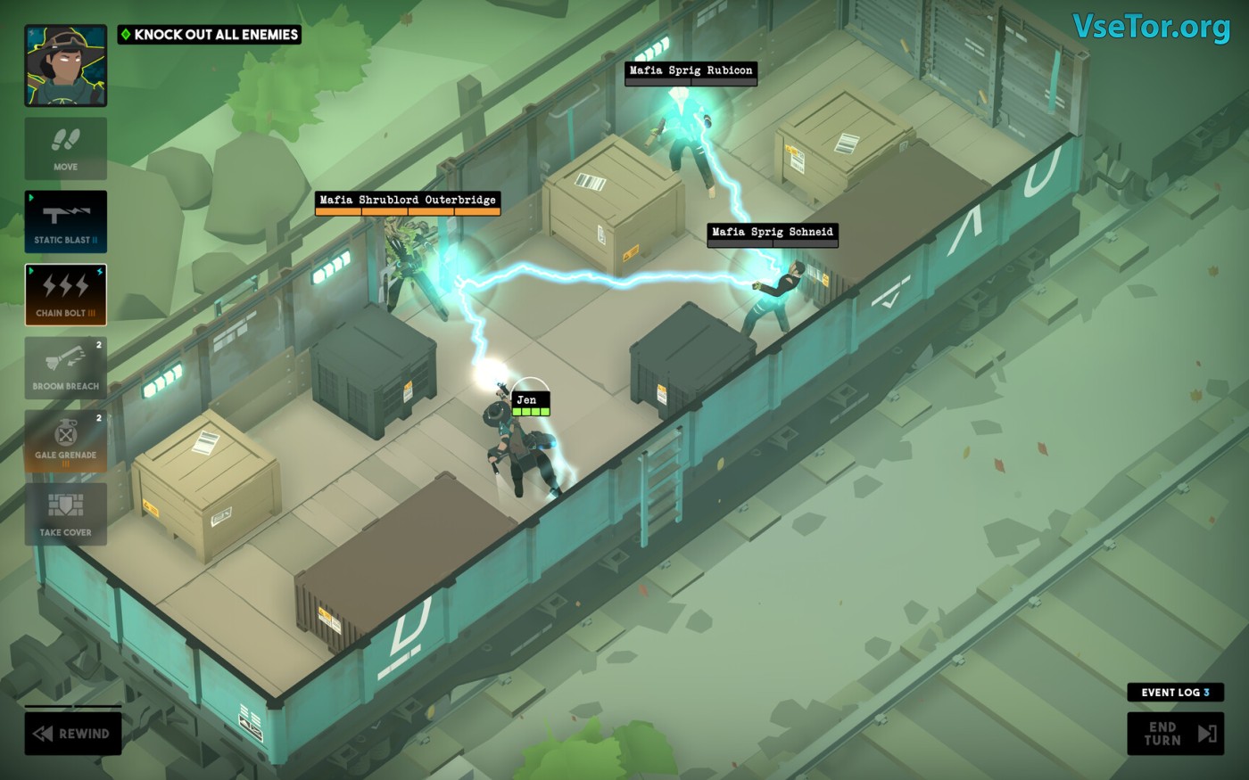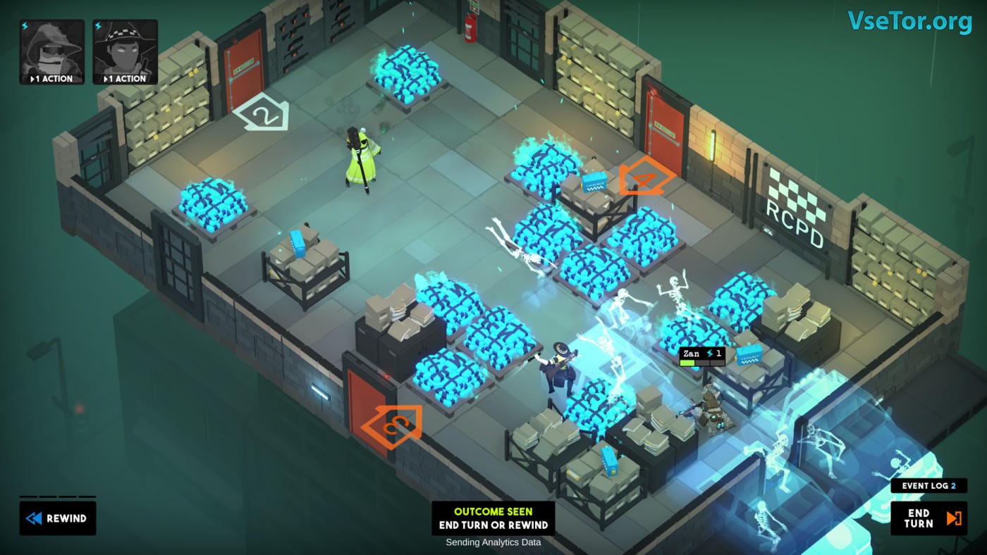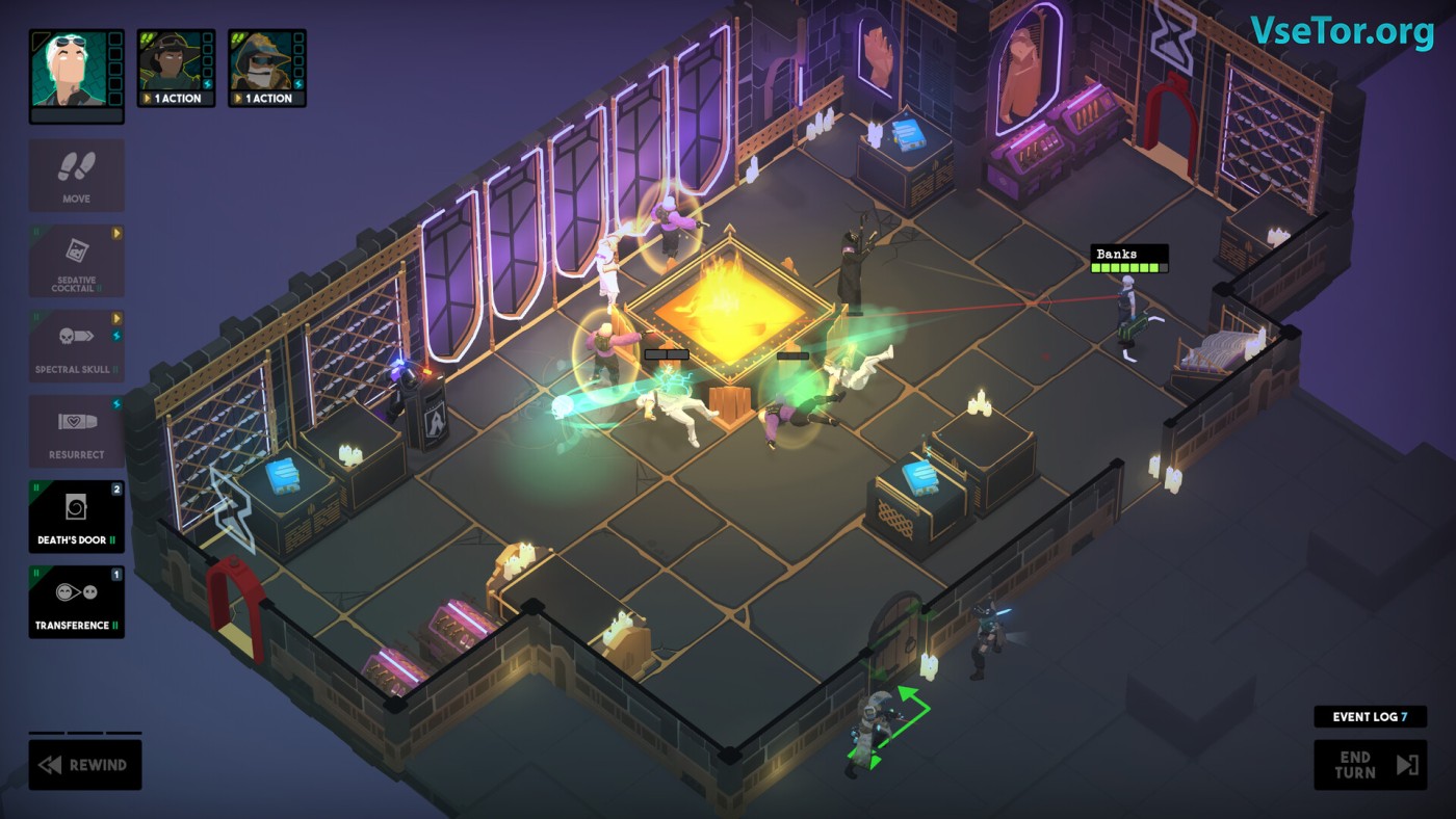 Геймплей балансирует между головоломкой и стратегией: каждый уровень — это череда комнат, где нужно планировать действия на ходу, используя уникальные способности персонажей. Зэн может создавать временные клоны, отвлекающие врагов, а штормовая ведьма Джен разряжает цепные молнии, отбрасывающие противников. Механика «Перемотки» позволяет откатывать неудачные ходы, превращая провалы в идеальные комбинации. По мере прохождения вы открываете перки — например, учите клонов взаимодействовать с окружением или увеличиваете радиус взрывов.