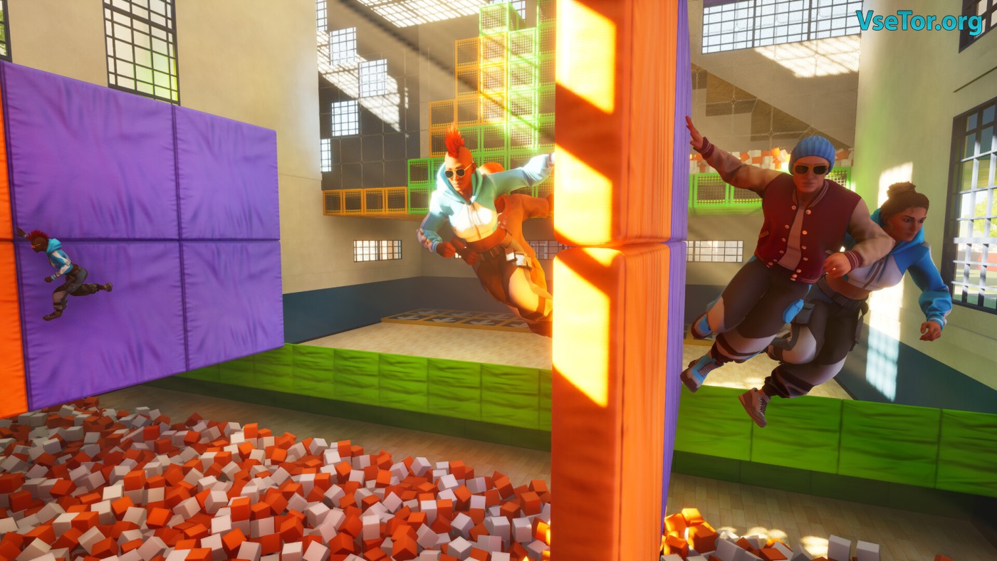 Локации поражают разнообразием: от школьных спортзалов с мячами до затопленных мегаполисов, где нужно уворачиваться от поднимающейся воды. В мультиплеере вас ждут 8 режимов: от классических забегов до «бомбочки» с таймером и королевской битвы. Есть и редактор уровней — простой, но мощный инструмент, где можно создавать смертельные трассы или уютные зоны отдыха. Правда, визуал персонажей скучноват, а анимации в третьем лице иногда дёргаются, но когда вы мчитесь по небоскрёбу, такие мелочи отходят на второй план.