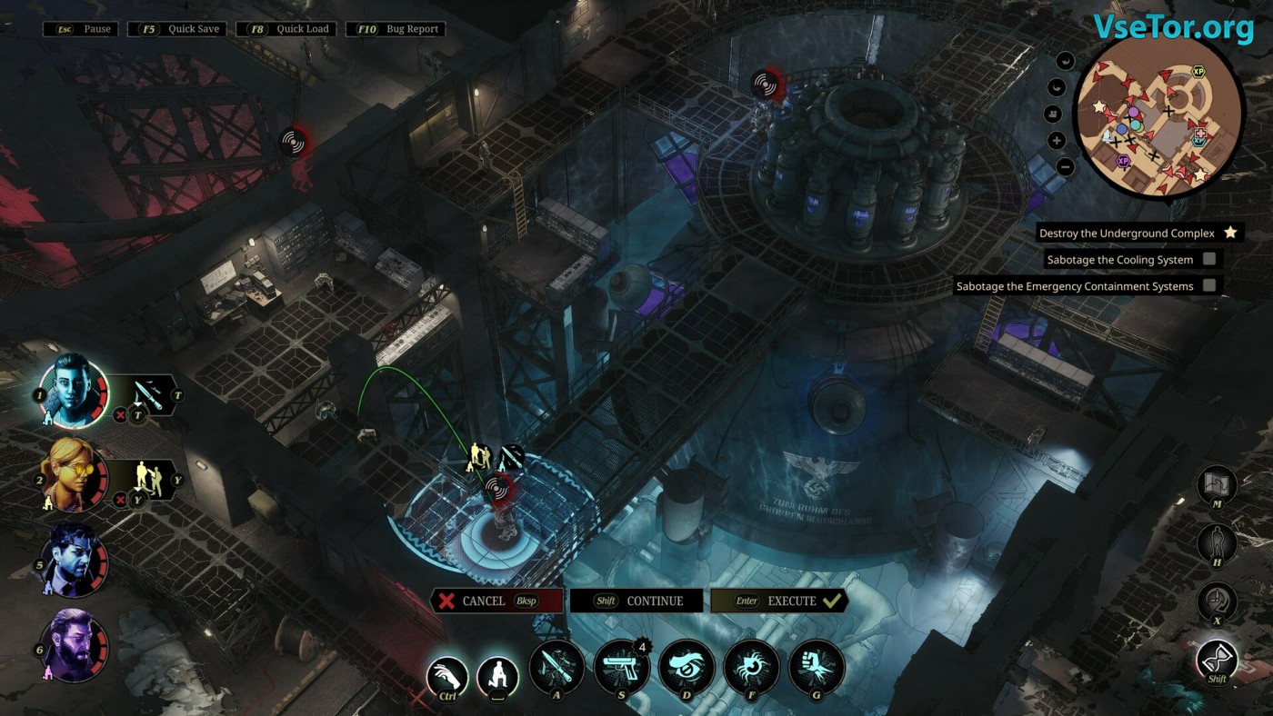 Sumerian Six — это тактическая игра в реальном времени, где команда учёных с паранормальными способностями противостоит оккультному Третьему рейху. Вместо штыков и танков здесь блики Geiststoff’а — древней энергии, которую Гитлер хочет обратить в «чудо-оружие». Ваш отряд, Enigma Squad, — это шестеро эксцентричных специалистов: от психиатра, маскирующего целые районы, до русского, превращающегося в медведя. Уровни — это лабиринты из патрулей и ловушек, где каждое убийство можно превратить в хореографический перфоманс. Включите планировщик атак, синхронизируйте удары — и наблюдайте, как фашисты падают, даже не успев понять, кто их достал.