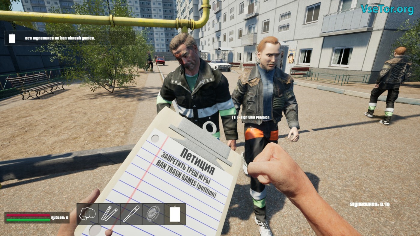 Skoof Simulator (Симулятор Скуфа) — это ироничный взгляд на жизнь простого рабочего парня, где обыденность превращается в череду абсурдных и смешных ситуаций. Вы играете за Скуфа — любителя диванного отдыха и танчиков, которого судьба внезапно вытаскивает из зоны комфорта. То придётся отрабатывать смену на заводе, ставя носки в угол между делом, то участвовать в эпичных разборках с гопниками у гаражей.