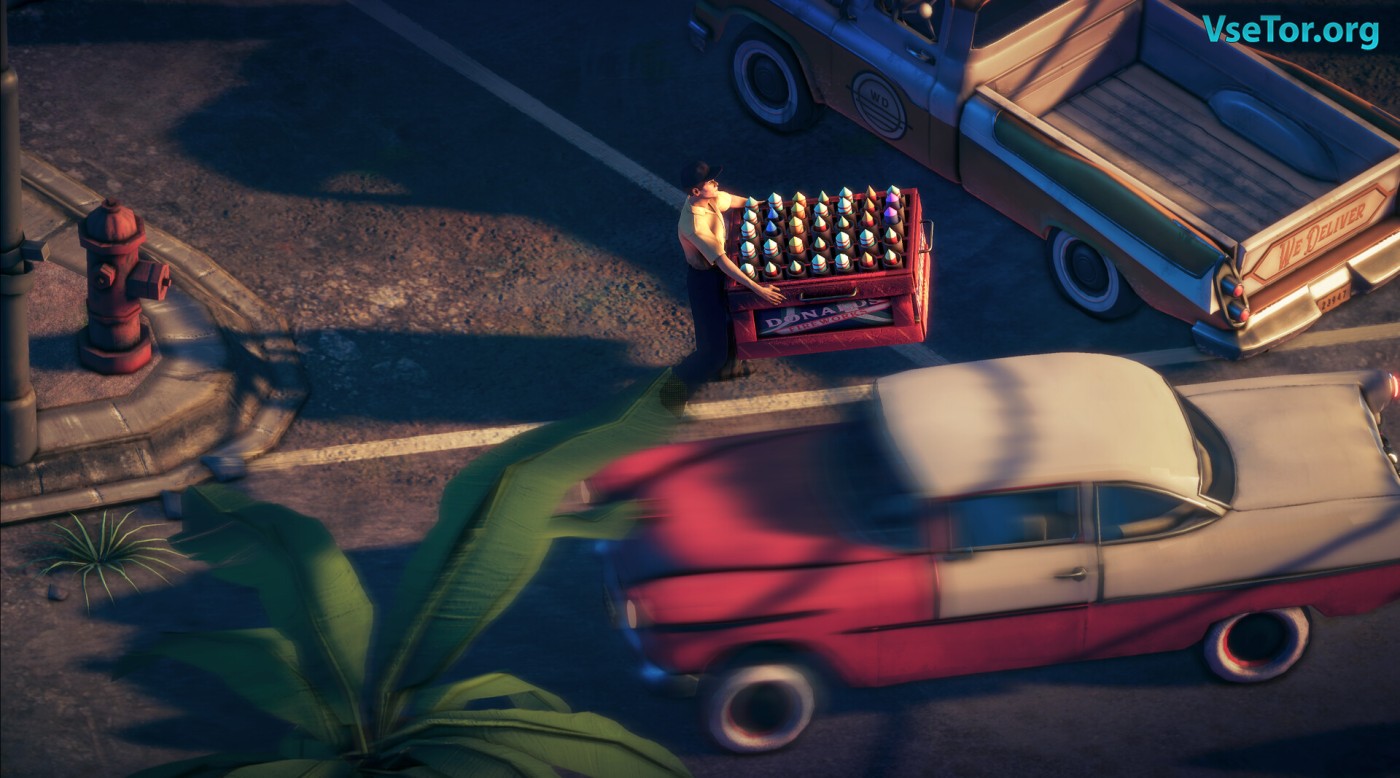 Deliver At All Costs переносит в атмосферный мир 1958 года, где вы играете за Уинстона Грина — талантливого, но неудачливого инженера, вынужденного подрабатывать курьером. С первого же задания ясно — это не обычные посылки: то груз взрывается фейерверками, то машина взлетает от гелиевых шаров, а местные жители норовят отомстить за разбитые заборы.