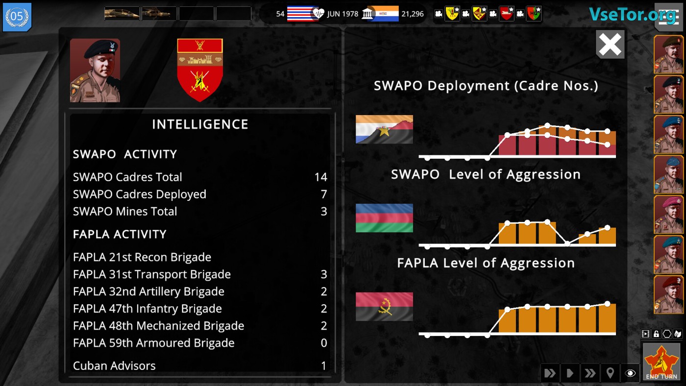 Игровой процесс — это баланс между контрпартизанскими операциями и полномасштабными боями с ангольской армией FAPLA, поддержанной Кубой и СССР. Карта огромна: от пустынь Намибии до джунглей Анголы, где скрываются вражеские базы. Вы будете выслеживать противника по следам, организовывать засады, а иногда — формировать ударные группы и пересекать границу для дерзких рейдов. Но будьте осторожны: каждое вторжение бьёт по вашей репутации в ООН. Особый шарм — историческая достоверность: юниты соответствуют реальным подразделениям, а ограничения по технике и солдатам заставляют принимать трудные решения.