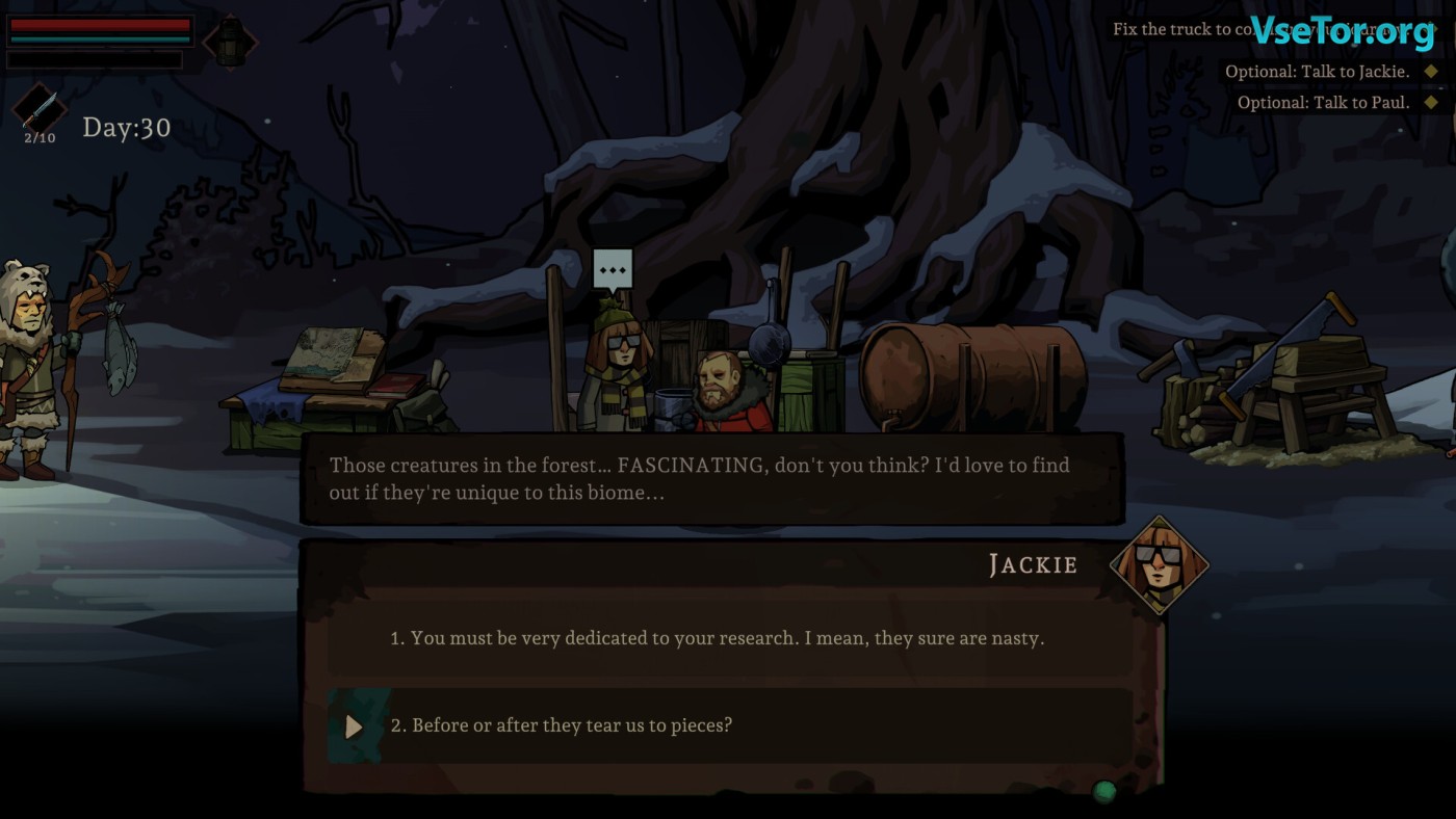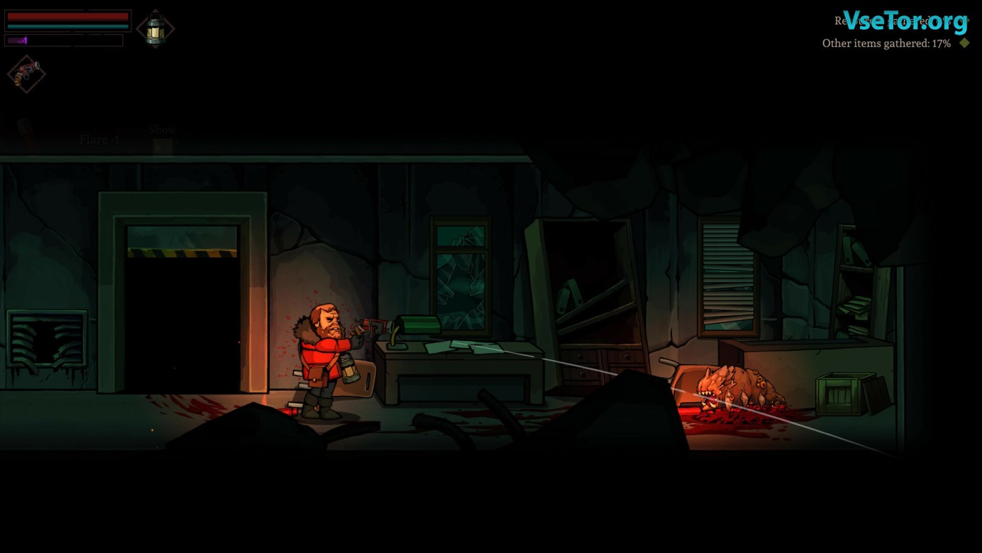 Геймплей построен на чередовании исследований и базы. В 2D-локациях — от ледяных пещер до заброшенных лабораторий — вас ждут не просто враги, а головоломки на выживание. Одних тварей можно обмануть светом фонаря, других — перехитрить ловушками, но любая ошибка отзывается стрессом, ведущим к безумию. Особенно удачны «травмы» — перманентные эффекты, которые и осложняют жизнь, и порой дают неожиданные преимущества: например, обострённое чутьё ценой панических атак.