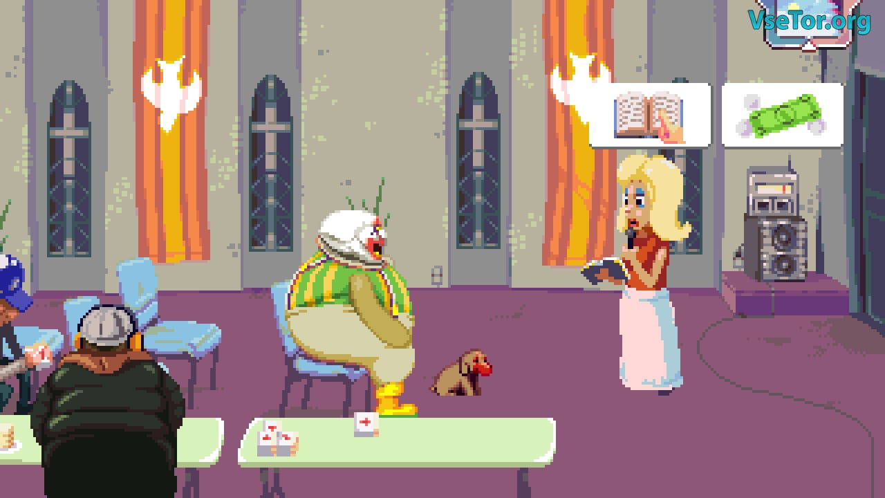 Dropsy – это путешествие в мир, где за жутковатой маской клоуна скрывается неожиданная нежность. Главный герой – неуклюжий, трогательный Дропси с пустым взглядом и вечной улыбкой, напоминающей выцветший хэллоуинский фонарь. После трагического пожара в цирке, который все считают его виной, он бродит по улицам, пытаясь подарить кому-то тепло – буквально, через объятия. Игроку предстоит решать головоломки, помогая жителям городка: накормить бездомную старушку, примирить братьев-активистов или просто подарить цветок испуганной девочке. Здесь нет диалогов – только пиксельные эмоции, сны-кошмары в стиле Линча и саундтрек, переключающийся с цирковых маршей на тяжёлый рок.