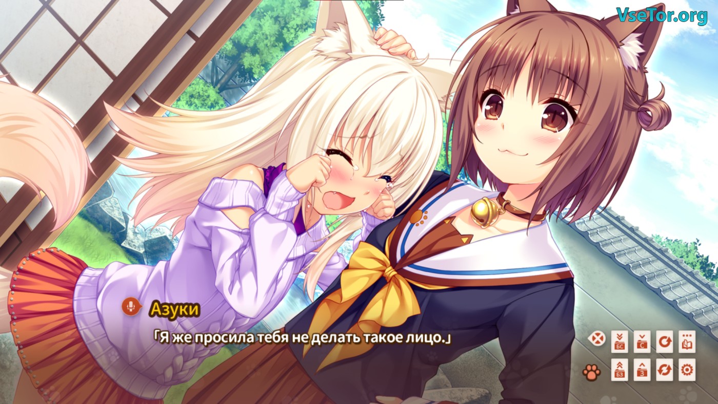 Главная фишка игры – революционная система E-mote, превращающая статичные спрайты в живых персонажей. Кошачьи ушки подрагивают от любопытства, глаза выразительно моргают, а смена эмоций происходит плавно, будто в анимации. Фоновая музыка со сладковатыми J-поп мотивами и детализированные фоны (от уютной кухни до сада с сакурой) создают атмосферу уюта. А если захочется оригинального звучания – можно включить двуязычные субтитры и сравнивать перевод с японской озвучкой.