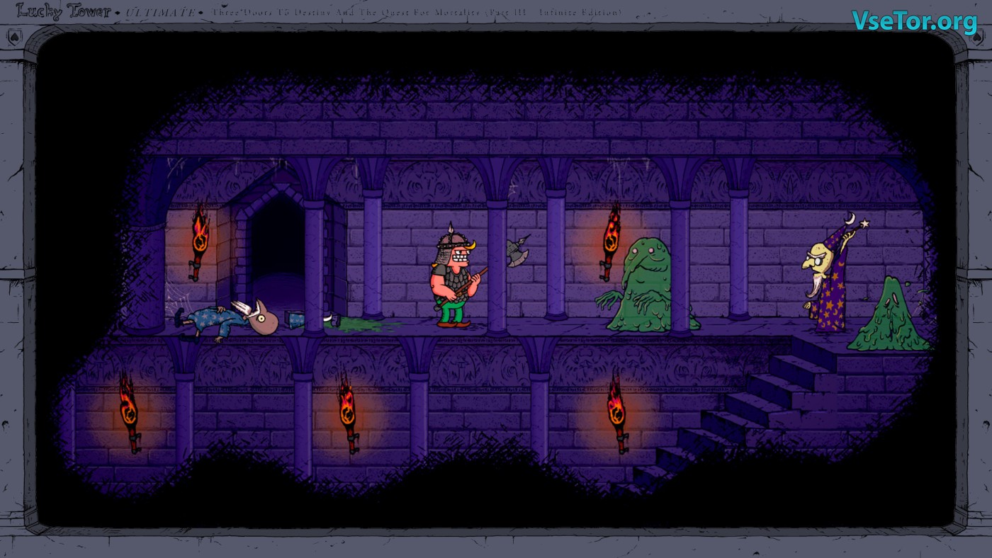 Визуально игра напоминает мультфильмы 90-х: ручная пиксельная анимация, гипертрофированная мимика и яркие локации, которые генерируются случайно. Даже интерфейс стилизован под старые Flash-игры, отдавая дань оригинальной серии. Озвучка добавляет харизмы — главный герой орет как Джонни Браво, а его спутники сыплют абсурдными шутками. Lucky Tower Ultimate — это не просто рогалик, а интерактивный стендап-шоу, где чем чаще вы умираете, тем веселее. У нас вы можете скачать Lucky Tower Ultimate торрент последнюю версию бесплатно на компьютер.