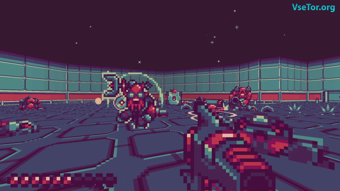 Визуальный стиль – любовное письмо эпохе пиксельных полигонов: угловатые текстуры, кроваво-красные «сопли» на стенах и враги, словно сошедшие с аркадных автоматов. Но за этой ретро-эстетикой скрывается удивительно детализированный мир: каждый уровень корабля уникален, а синтвейвовый саундтрек усиливает ощущение изоляции и паранойи. С пятью уровнями сложности (включая режим для тех, кто хочет отключить «голод» карты) игра умеет быть и жёстким вызовом, и доступным приключением – главное, не забывать сохраняться в специальных комнатах, которые одновременно служат хранилищем для коллекционных дисков. У нас вы можете скачать Exophobia торрент последнюю версию бесплатно на компьютер.