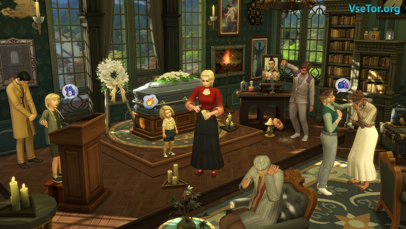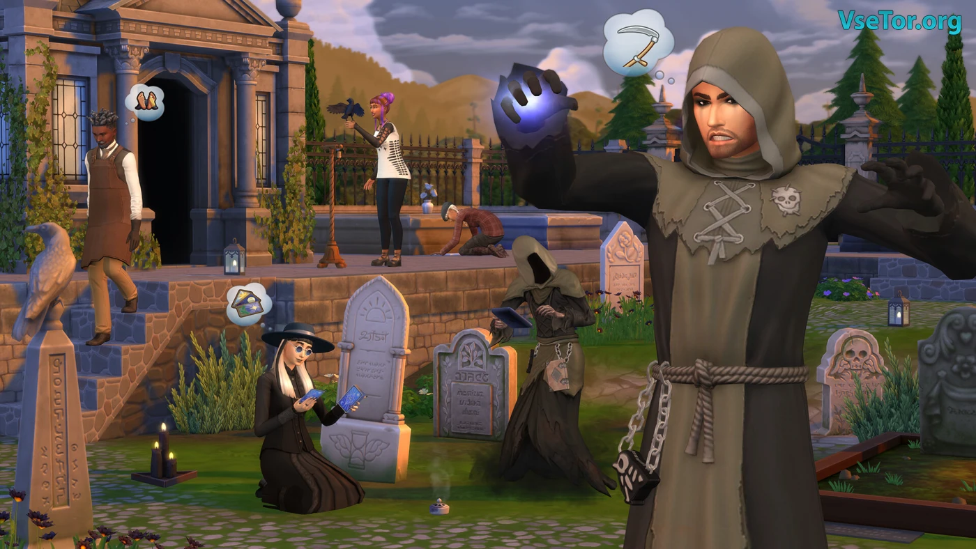 Визуально дополнение выдержано в эстетике викторианской готики: чугунные ограды, витражи с воронами, платья с кружевными воротниками и даже детские костюмчики-пиджаки для малышей. Новые локации впечатляют детализацией, особенно Обитель Безглавых — рабочее место Жнецов с жутковатой лабораторией и порталом в загробный мир. Если вы любите макабрические сюжеты, но без излишнего пессимизма (всё-таки это The Sims), «Жизнь и смерть» станет идеальным дополнением для ваших историй. У нас вы можете скачать Симс 4 Жизнь и смерть торрент последнюю версию бесплатно на компьютер.