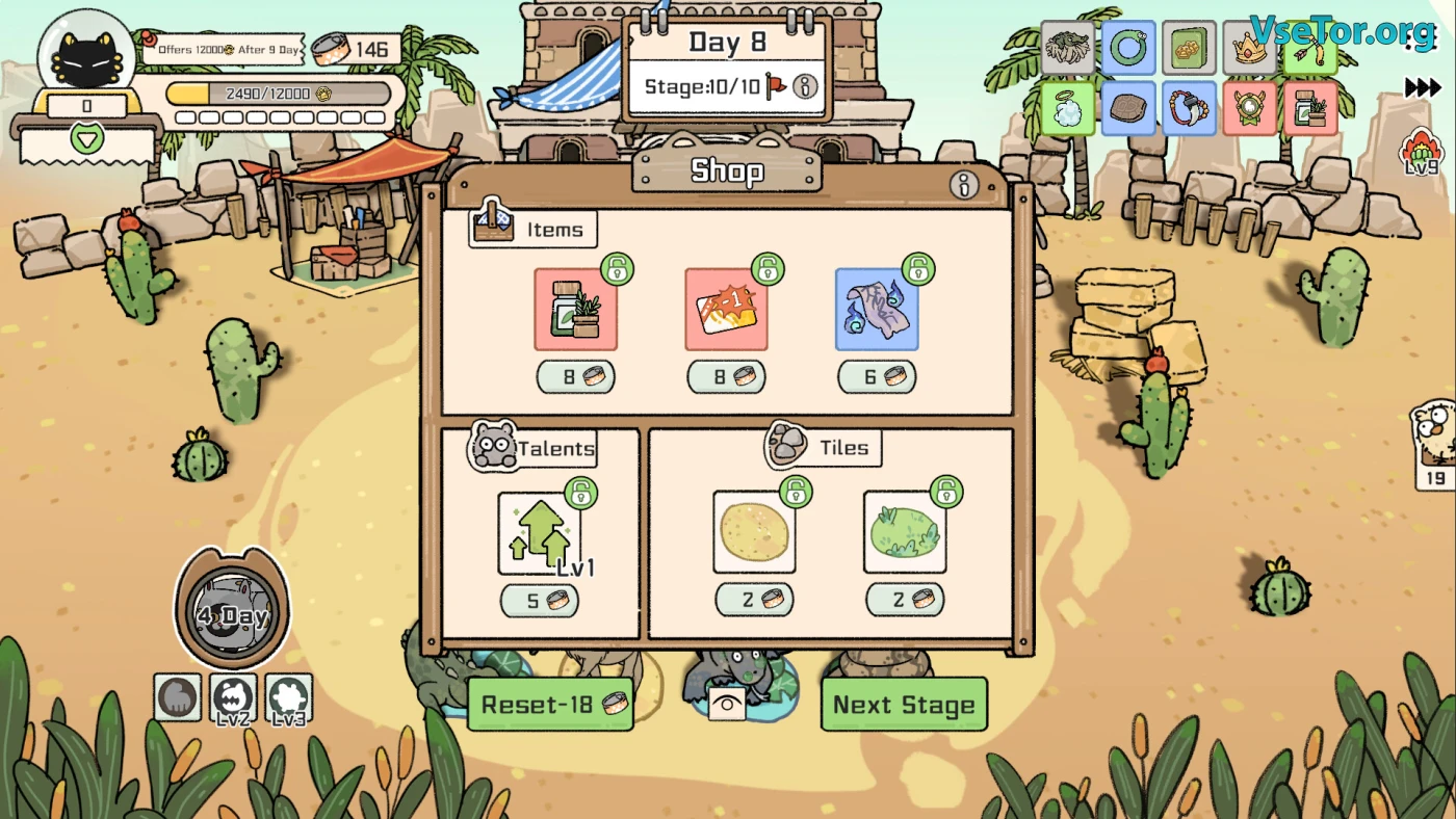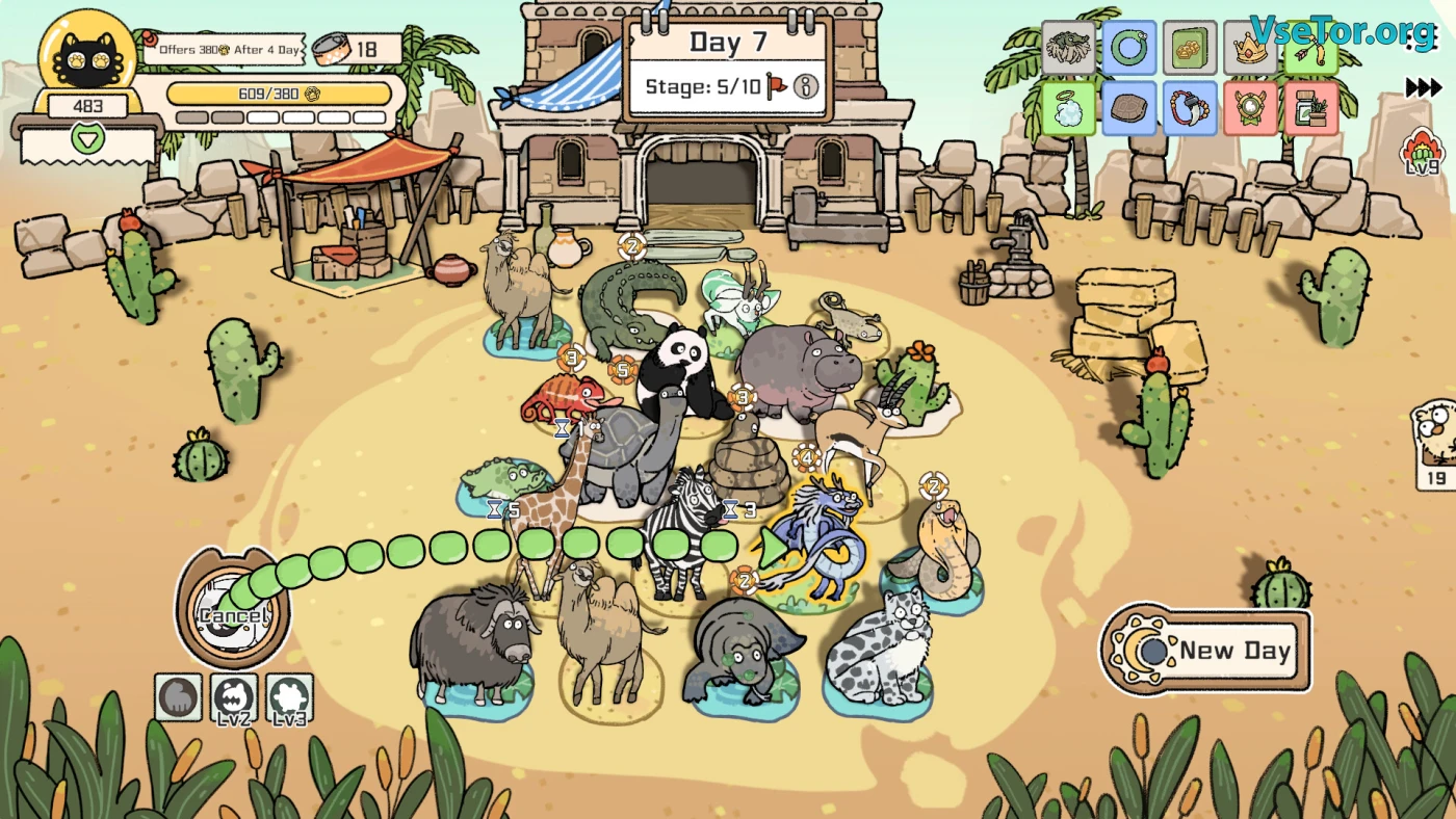 Главная фишка игры — её хаотичная, но продуманная механика. Каждую ночь ваши животные возвращаются в хлев, а утром расставляются на поле в случайном порядке, как будто кто-то трясёт гигантский автомат с шариками. Ваша задача — собрать идеальную комбинацию, чтобы коты-боги получили свою дань, а вы не отправились в немилость. Для этого придётся экспериментировать: объединять животных в фракции (например, "Лесной хор" или "Подпольная алхимия"), менять ландшафт (луга, пещеры, вулканы) и подбирать игрушки, которые превратят обычного кота в настоящего повелителя времени.
