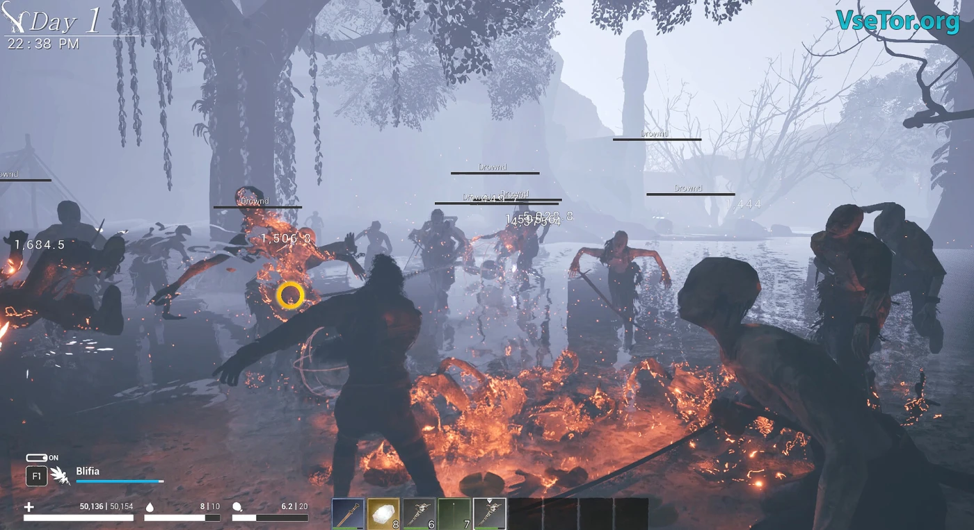 Однако с наступлением темноты остров преображается, и на него опускается угроза в виде волн оживших мертвецов. Каждая ночь требует от игрока стратегии и навыков в бою: вам предстоит отбиваться от множества монстров, используя уникальные умения, зависящие от выбранного оружия, такие как мощные удары копьем или круговой удар мечом. Специальные предметы могут временно остановить вторжение нежити, но их нужно найти, исследуя остров.