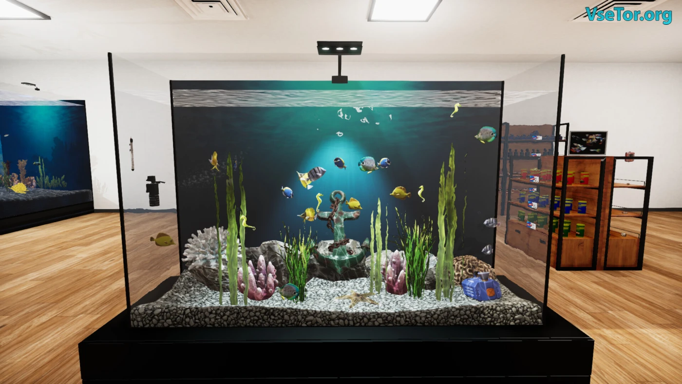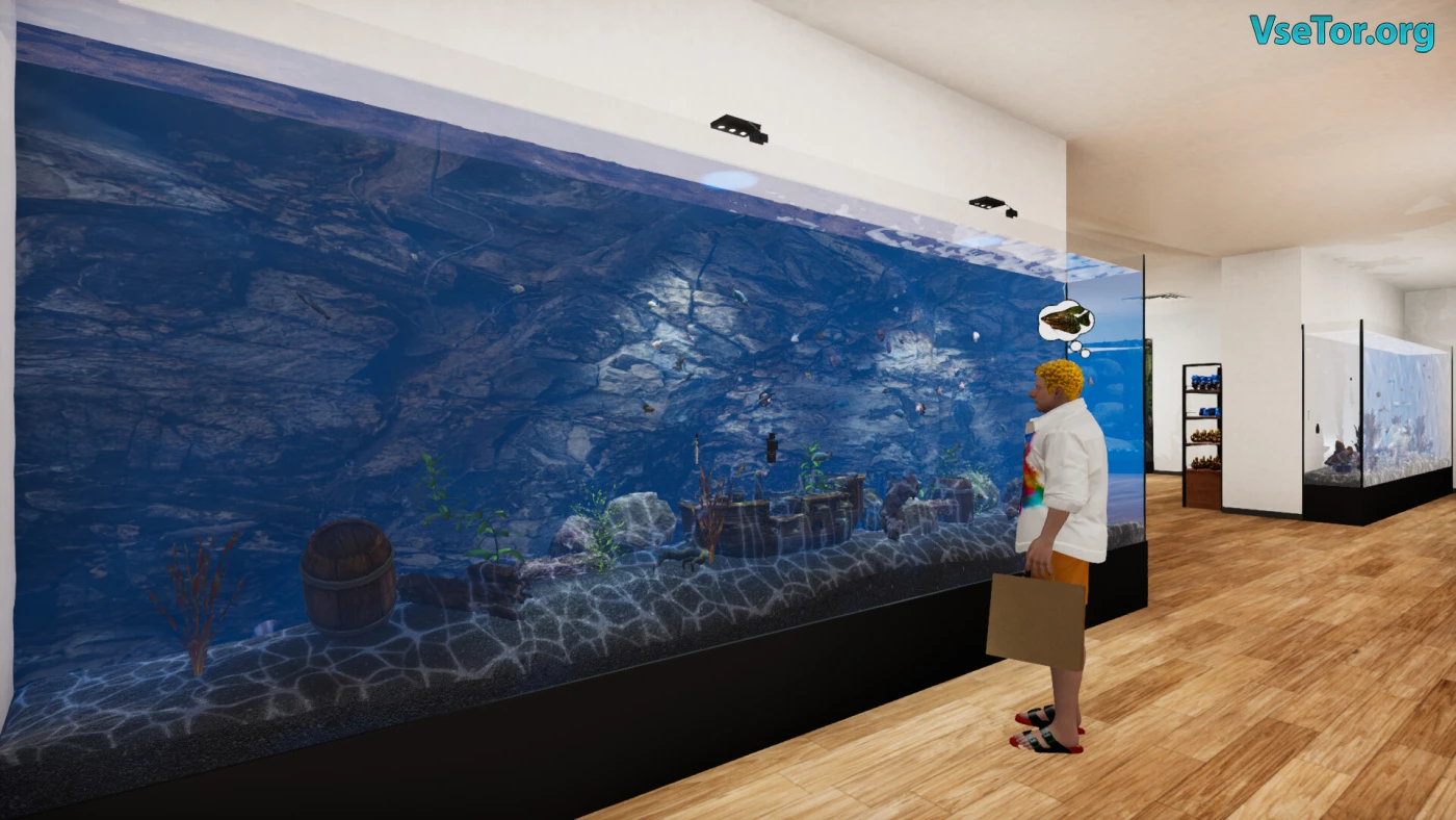 Шум воды в аквариумах тихо звучит в Aquatic Store Simulator, где вы открываете свой магазинчик с подводным миром и начинаете его обживать. Это симулятор от первого лица, где вы рулите магазином аквариумистики – ставите полки, закупаете рыбок, растения и всякое добро вроде фильтров и украшений. Тут всё про работу руками – выбираете товар, расставляете его, следите за ценами и стараетесь, чтобы покупатели ушли с чем-то в руках. Ещё можно делать большие аквариумы, подбирать для них рыбок и смотреть, как они плавают, пока вы хлопочете.
