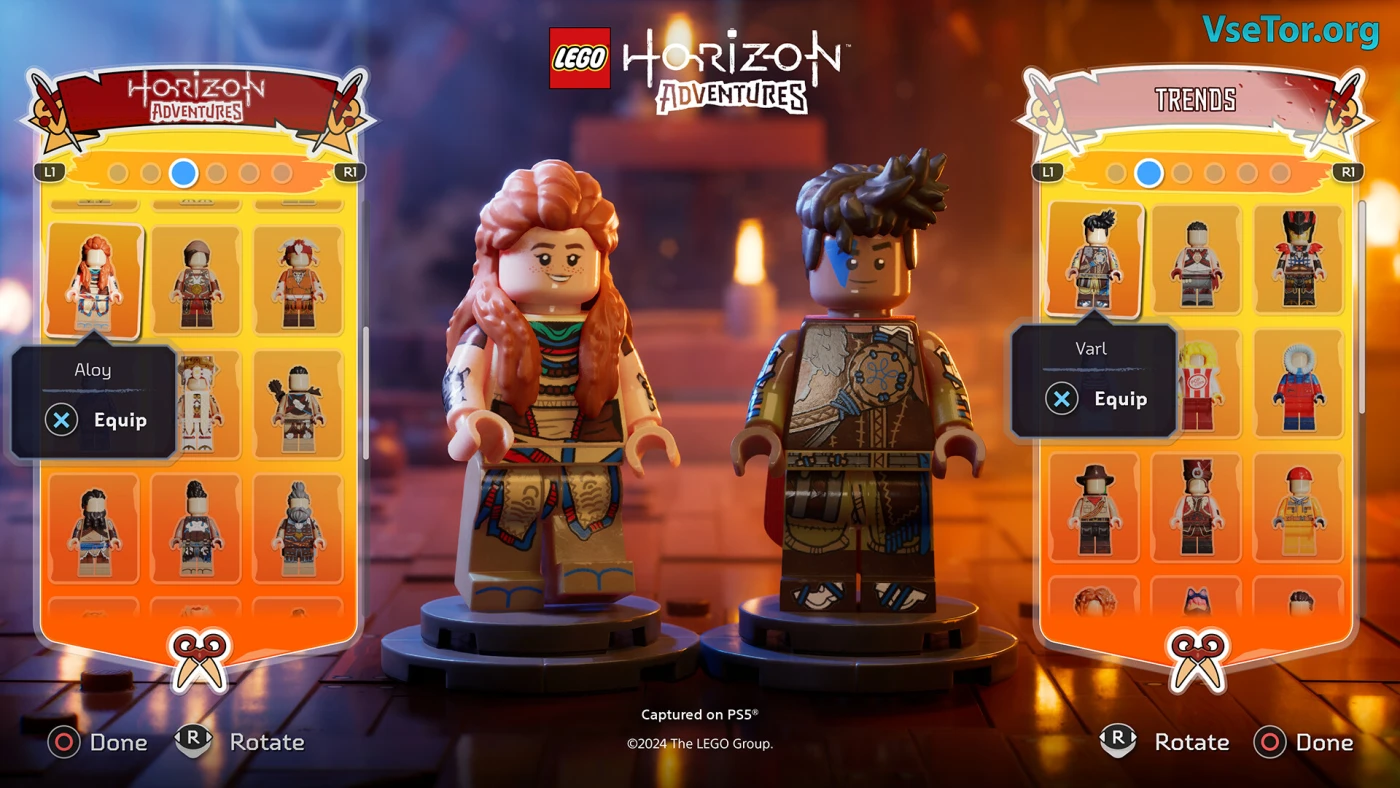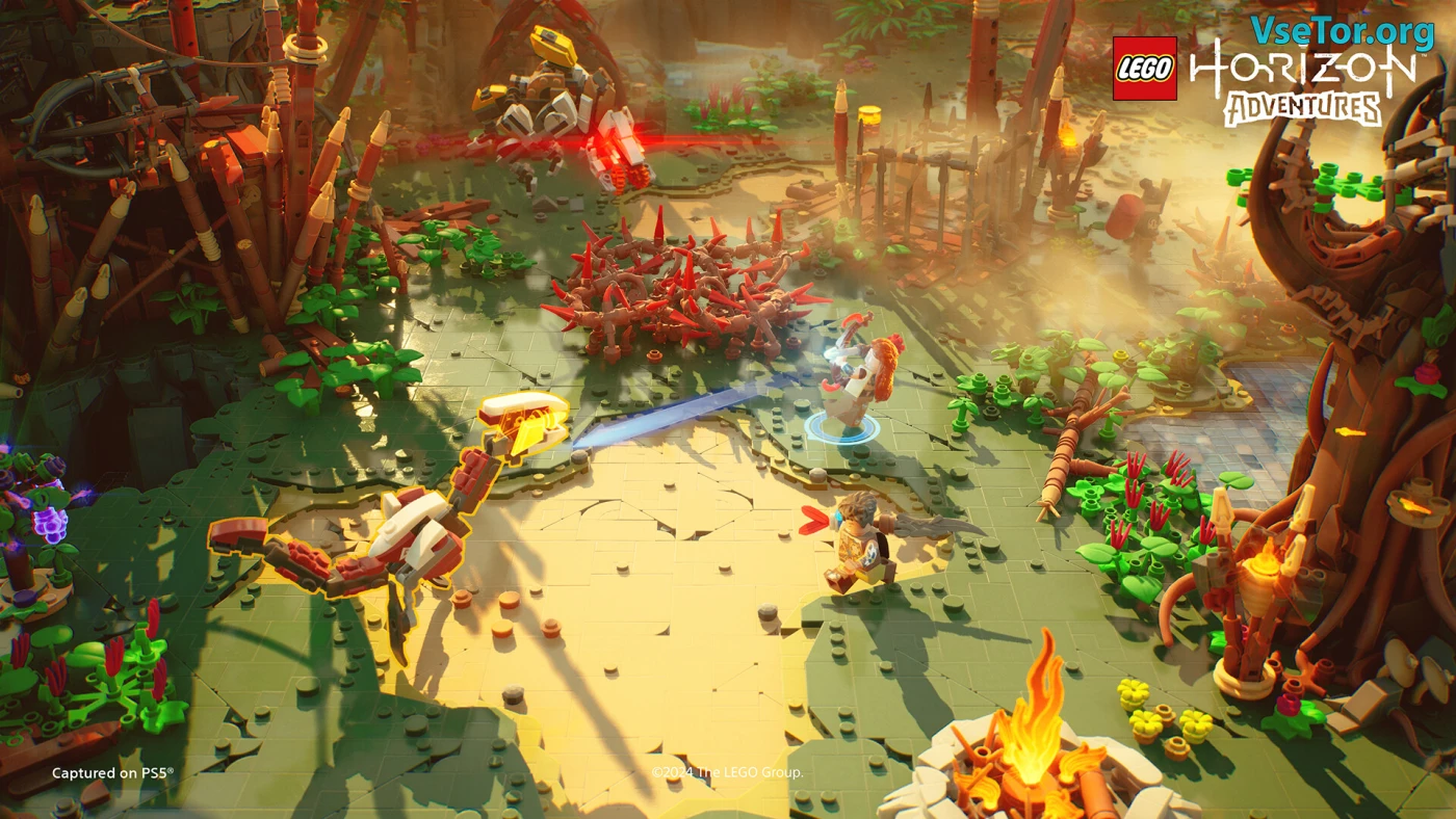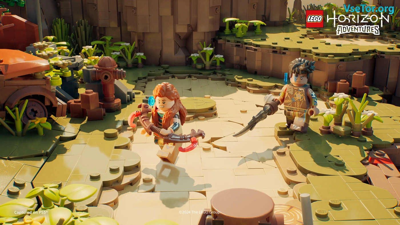 Мир яркий – леса зелёные, горы высокие, пещеры полны машин. Всё блестит, как настоящие кирпичики, а звуки – стук деталей, рёв роботов, голоса друзей – делают игру живой. Можно играть одному или вдвоём с кем-то рядом на одном экране. Если хочется чего-то простого и весёлого с LEGO и Horizon, вам сюда. Хотите побегать по кирпичному миру с Элой? Тогда берите и пробуйте! У нас вы можете скачать LEGO Horizon Adventures торрент последнюю версию бесплатно на компьютер.