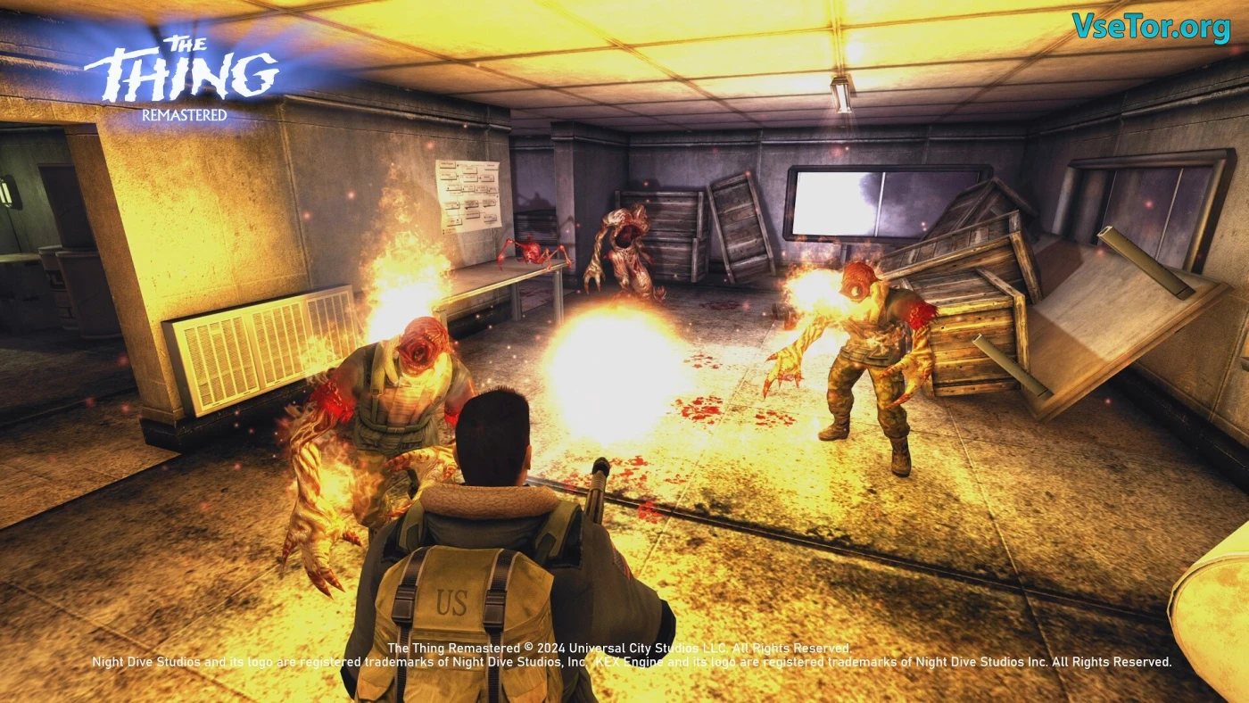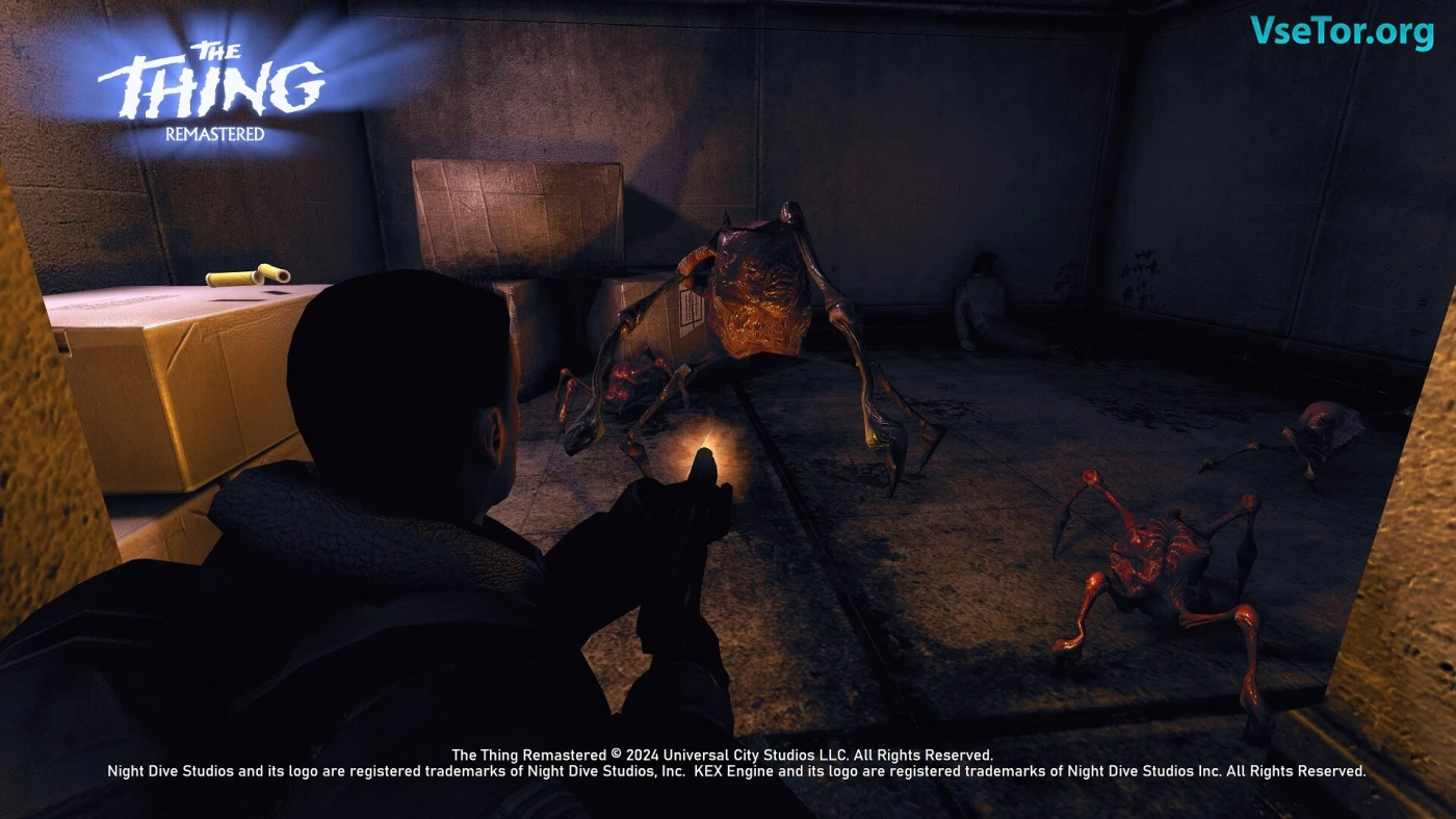 Визуально ремастер переосмыслил стиль PS2 через современные технологии: динамические тени, детализированные текстуры и пугающие модели существ. Монстры выглядят как ожившие кошмары – клубки щупалец, сросшиеся тела и лица, разрывающиеся пополам. Саундтрек перезаписан, но сохранил леденящую атмосферу оригинала: скрип металла, завывание ветра и жуткие звуки мутирующей плоти. Если вы фанат фильма или оригинальной игры, эта версия – лучший способ вспомнить классику. У нас вы можете скачать The Thing: Remastered торрент последнюю версию бесплатно на компьютер.