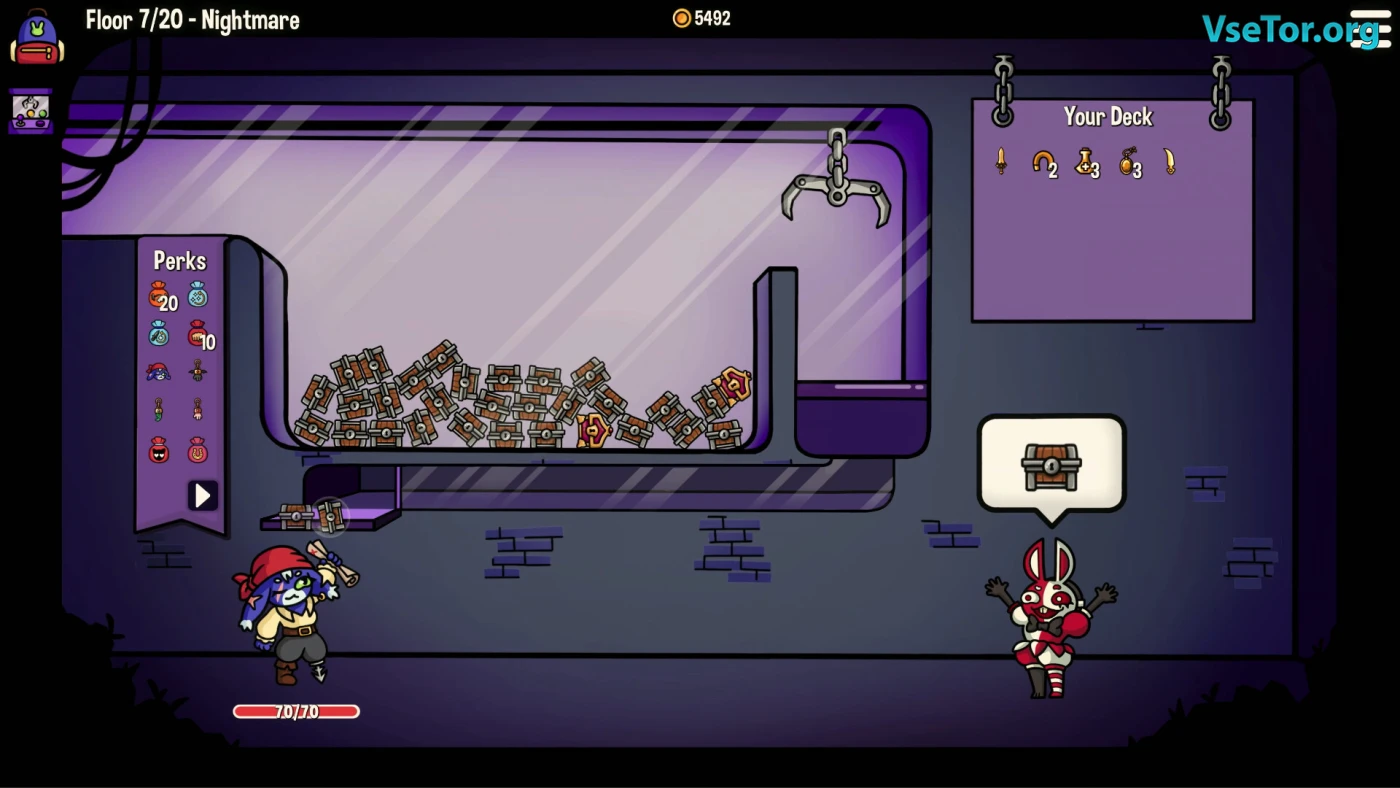 Dungeon Clawler затягивает вас в подземелье, где вместо меча в руках — клешня от игрового автомата. Представьте: вы стоите перед машиной с игрушками, только вместо плюшевых мишек там мечи, щиты и всякие штуки для битвы. Это не обычная игра, а смесь рогалика и карточной стройки, где вы собираете колоду, хватая предметы клешнёй, чтобы сражаться с врагами. Цель простая — добраться до конца и забрать свою потерянную лапу у злого лорда подземелья.