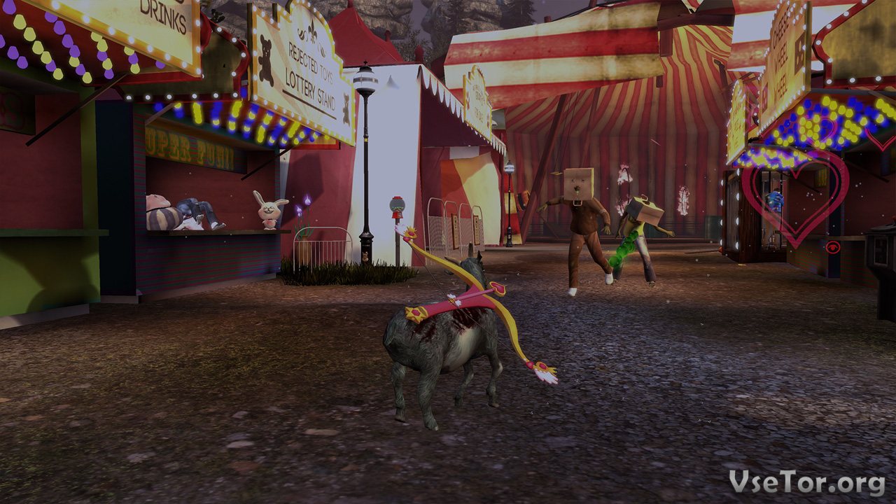 А еще главный герой Goat Simulator может лизать все подряд. Причем, лизание в данном случае сопровождается приклеиванием к языку «предмета обожания». Например, вы можете лизнуть арбуз, и когда он прилипнет к языку. Начать им размахивать в разные стороны, ударяя людей или портя предметы из окружения. В общем, творить беспорядок здесь можно самыми разными способами. Ну а плюс ко всему вам будут даваться еще и различные задания, среди которых провоцирование пожаров и взрывов, уничтожение предметов и не только. У нас вы можете скачать Goat Simulator торрент последнюю версию бесплатно на компьютер.
