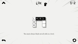 Мир LOK Digital – это чёрно-белые рукотворные иллюстрации, напоминающие минималистичные скетчи в блокноте, и медитативный саундтрек, создающий атмосферу спокойного сосредоточения. Каждый уровень – это чистый лист с разбросанными буквами, который нужно «затемнить», составляя слова из соседних символов (диагонали не работают). Сложность растёт органично: новые слова добавляют механики – например, «X» меняет направление цепочки, а «BE» позволяет дописывать буквы на пустых клетках. Особый кайф – наблюдать, как решение перекраивает поле, открывая ранее скрытые возможности.