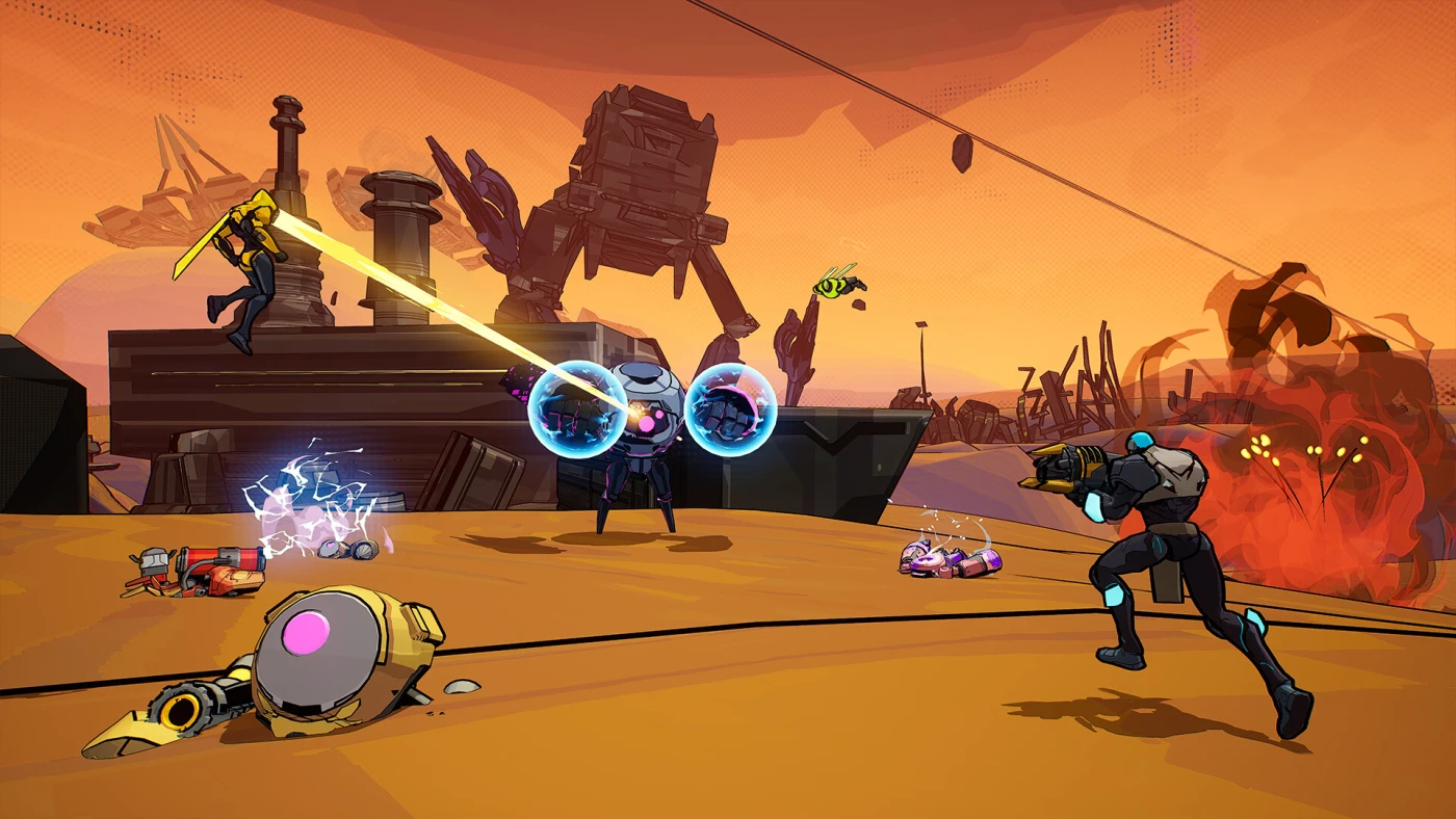 Игровой процесс построен на классической формуле жанра: исследуйте локации, активируйте передатчики и готовьтесь к схваткам с боссами. Однако есть и свои фишки – например, система перегрева оружия, заставляющая переключаться между режимами стрельбы. Усиления (аугменты) варьируются от банальных бонусов к урону до экзотических эффектов вроде чёрных дыр, но их подбор случаен, что добавляет элемент неожиданности. Кооператив на четверых скрашивает монотонность, правда, играть можно только с друзьями – открытых серверов нет.