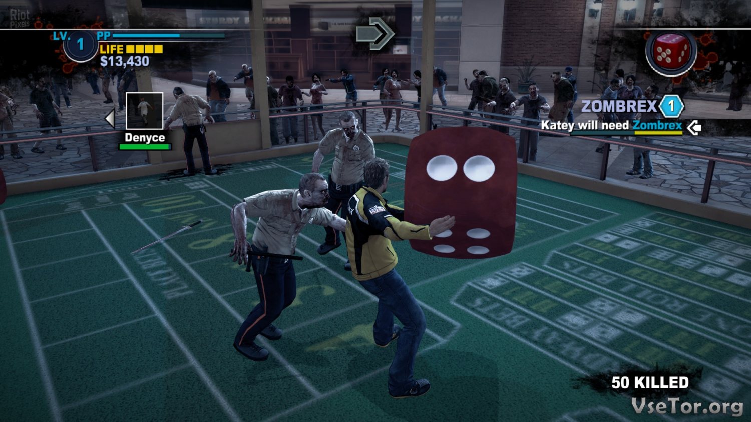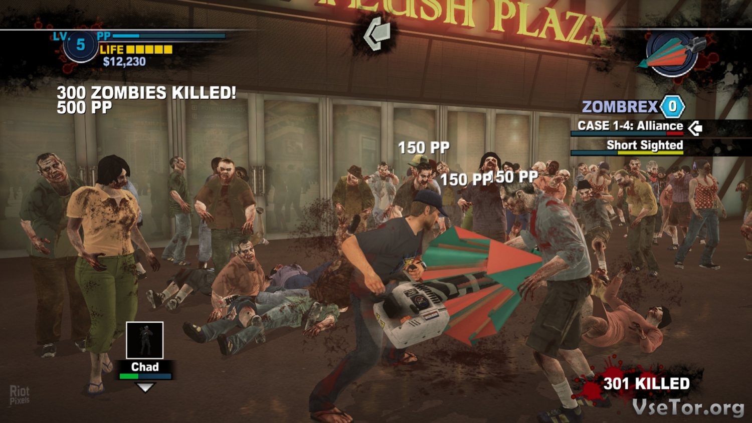Что до заданий, так их теперь и вовсе столько, что выполнение может занять не один десяток часов. Да и разнообразие теперь налицо – задания разнятся и всегда добавляют в геймплей что-то новенькое. А плюс ко всему в Dead Rising 2 в зависимости от решений и действий игрока меняется сюжетная линия. И что куда интереснее, действия игрока могут привести к семи разным концовкам. Причем концовка определяется не одним выбором или действием, а целым списком действий главного персонажа, вплоть до провала той или иной миссии. У нас вы можете скачать Dead Rising 2 торрент последнюю версию бесплатно на компьютер.