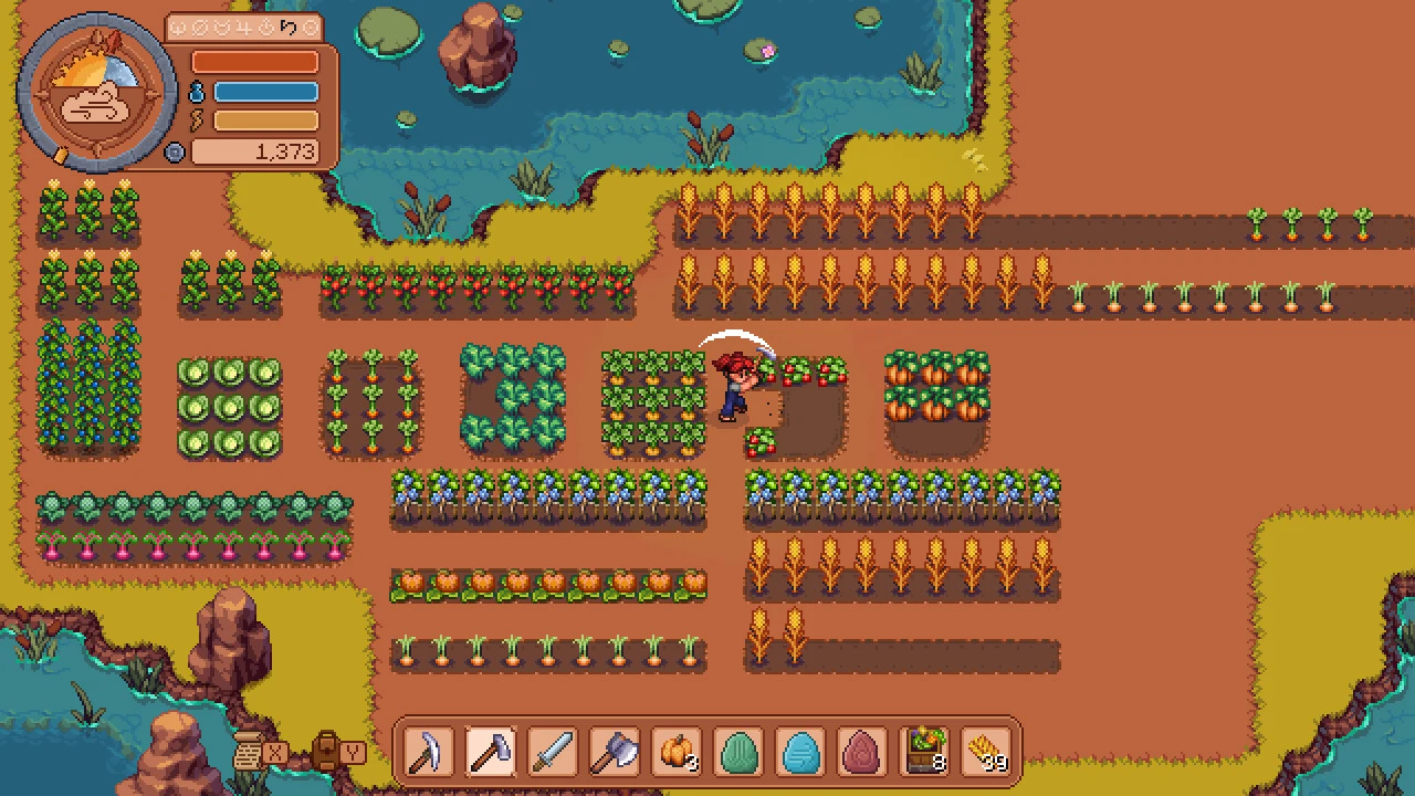 Механика морских сражений удивительно глубока для пиксельного симулятора: разные культуры становятся боеприпасами (острый перец поджигает вражеские паруса, а морозные ягоды замораживают корпус), а модульная система улучшений позволяет кастомизировать судно от парусов до орудий. На суше же вас ждут не только мирные активности вроде азартной карточной игры на рыбу или открытия спа-салона, но и магические камни, дающие способности вроде огненных шаров.