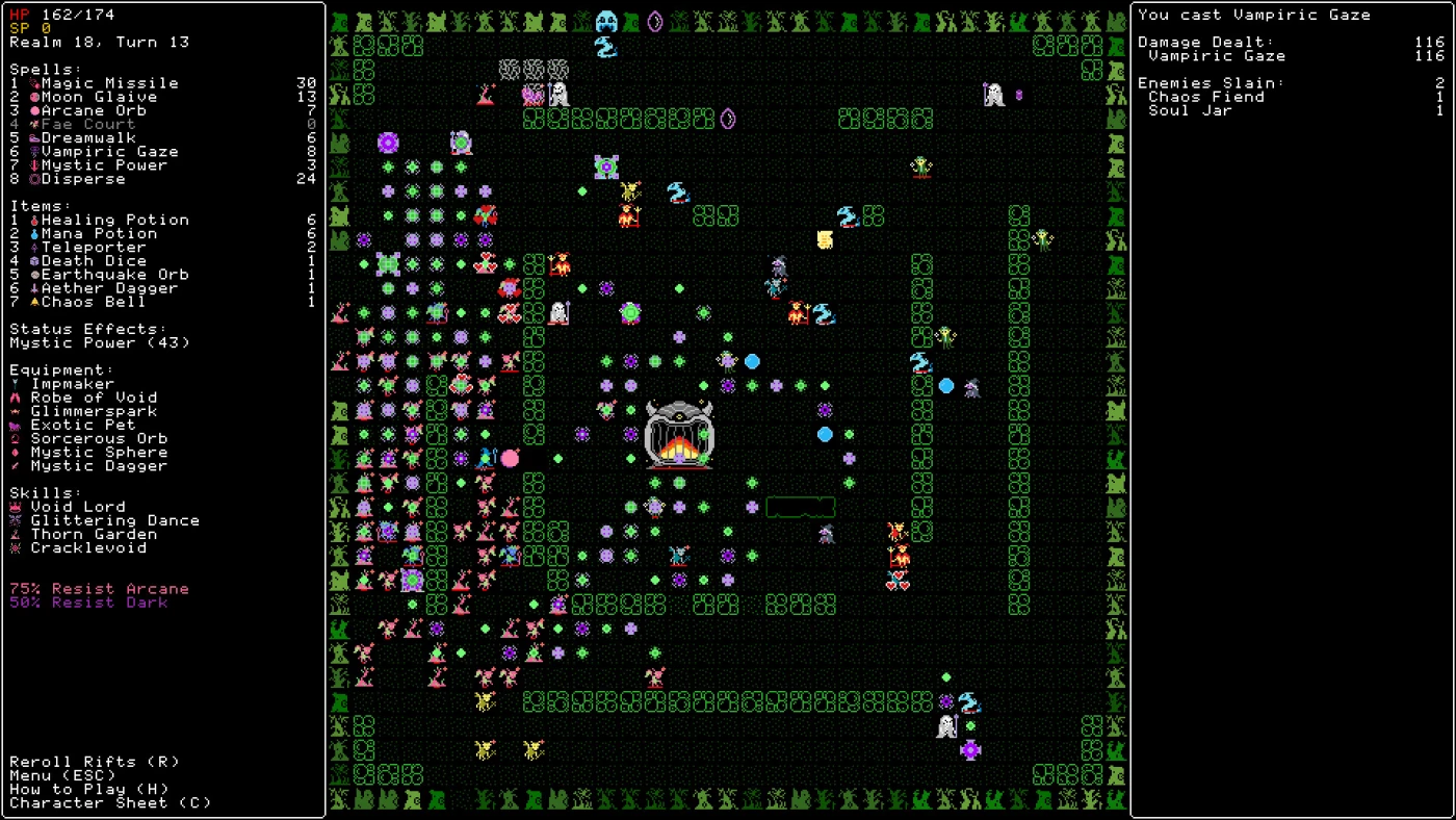 В отличие от большинства рогаликов, игра отвергает скрытность и рутинный фарм. Вы всегда видите карту порталов и сами выбираете цель: рисковать ли сражением с многоуровневым лич-огром или сначала раздобыть шлем, перенаправляющий урон. Физика боя прозрачна (никаких скрытых формул), но враги не дают расслабиться — встретите ли вы обычных огров, их огненных или фейри-версий, зависит от капризов генерации. Перезарядка заклинаний после каждого уровня компенсируется хрупкостью раннего этапа: одна ошибка в расчёте урона, и ваш великолепный замысел рассыплется под копытами тех же огров. У нас вы можете скачать Rift Wizard 2 торрент последнюю версию бесплатно на компьютер.