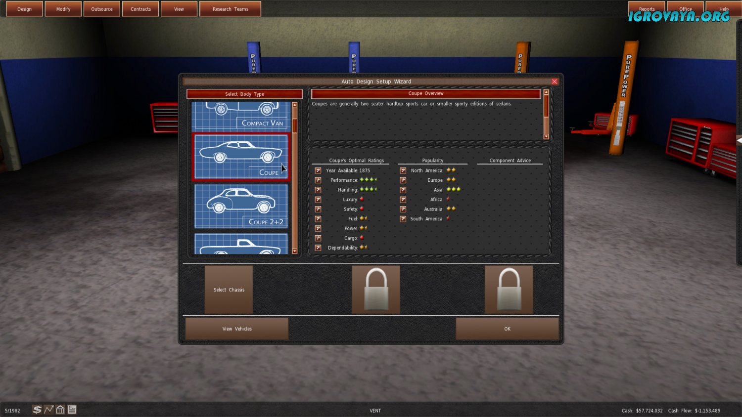 И вообще, процесс развития в данной игре максимально детализирован. Взять даже создание новых моделей автомобилей. Вам придется лично заниматься созданием отдельных частей авто: шасси, двигатели, тормоза и электроника, коробки передач и не только. После этого придется много времени уделить созданию дизайна, что тоже не так уж и просто, ведь даже одна маленькая деталь может испортить весь ваш труд и репутацию. А потом еще придется заняться тест-драйвами и продажами, рекламой, маркетингом, и многим-многим другим.