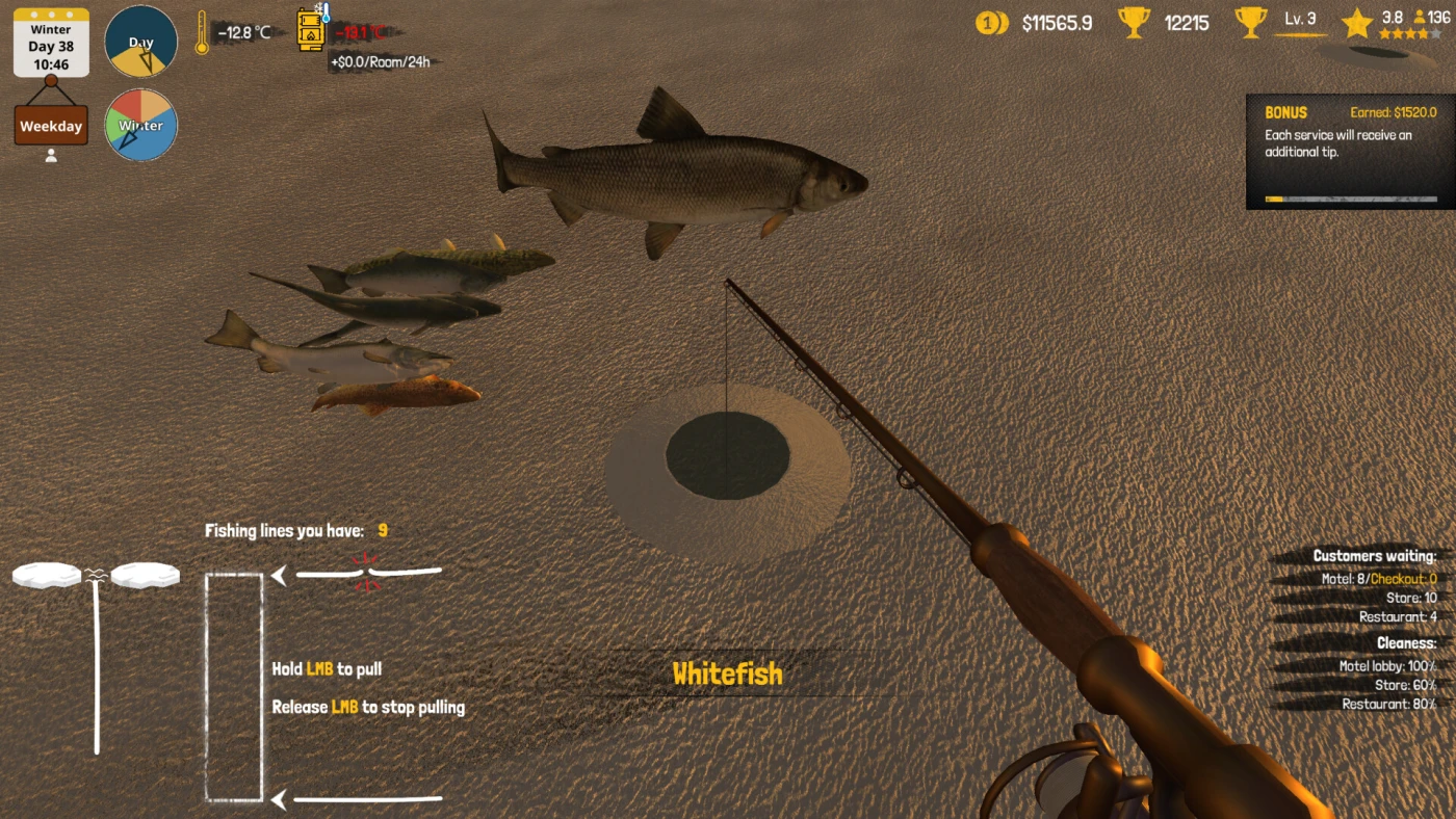 Дело не только в уборке — мотель можно растить. Стройте лавки с сувенирами, рестораны, где подают мясо с вашей охоты. Да, охота тут тоже есть: берёте ружьё, идёте в лес за дичью, чтобы потом накормить гостей. Летом боритесь с сыростью, зимой топите печи, а помощников нанимаете, потому что одному всё не вытянуть — кто-то моет полы, кто-то жарит оленину. Бывает, нагрянет полиция или проверка, а то и попросят помочь выследить какого-нибудь беглеца — скучать не приходится.