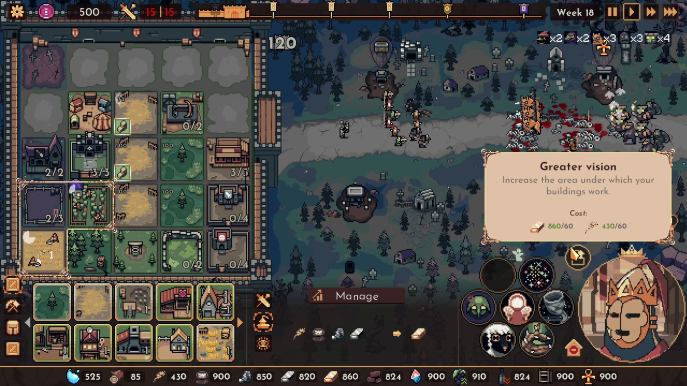 В The King is Watching вы оказываетесь в королевстве, где каждая ваша ошибка — это шанс провалить всё, ведь король следит за каждым шагом. Это стратегия с элементами рогалика, где вы — управляющий, которому нужно держать в узде ресурсы, чтобы выжить и угодить придирающемуся монарху. Тут всё крутится вокруг трёх основных дел: собирать еду, дерево и железо, строить здания и защищаться от набегов. Каждый день — как испытание: то крестьяне голодают, то враги ломятся в ворота, а король только и ждёт повода вас казнить.