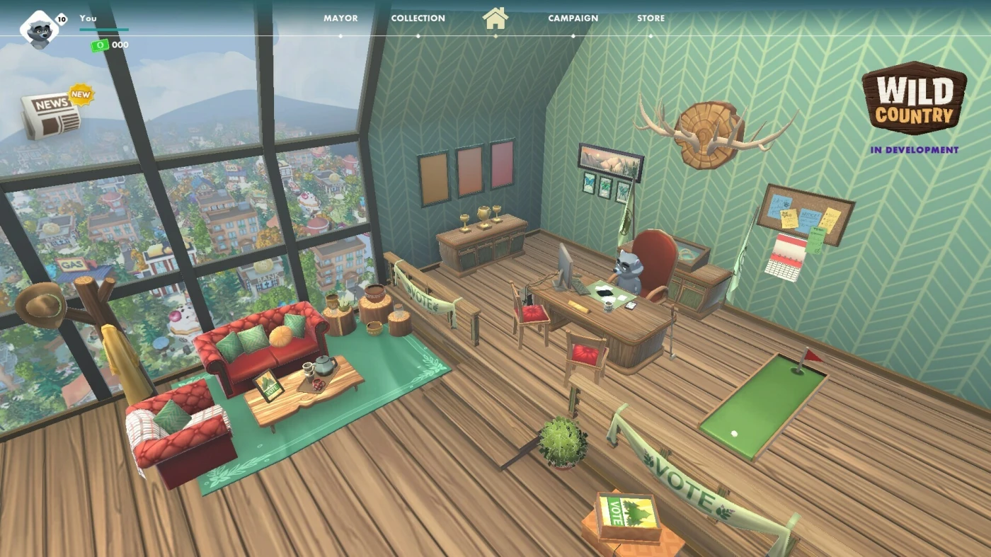 Wild Country — необычный гибрид карточной стратегии и градостроительного симулятора, где вам предстоит возводить город буквально по одной карте за раз. Действие разворачивается в уютном мире Биг-Скай Каньона, населённом антропоморфными персонажами — от предприимчивых енотов до загадочных путешественников из будущего. Каждая партия превращается в тактическую дуэль: вы одновременно соревнуетесь за прибыль (первый, кто заработает 5000$, побеждает) и создаёте уникальные комбинации зданий, ведь соседство жилых кварталов с коммерческими центрами может принести бонусы или катастрофические последствия.