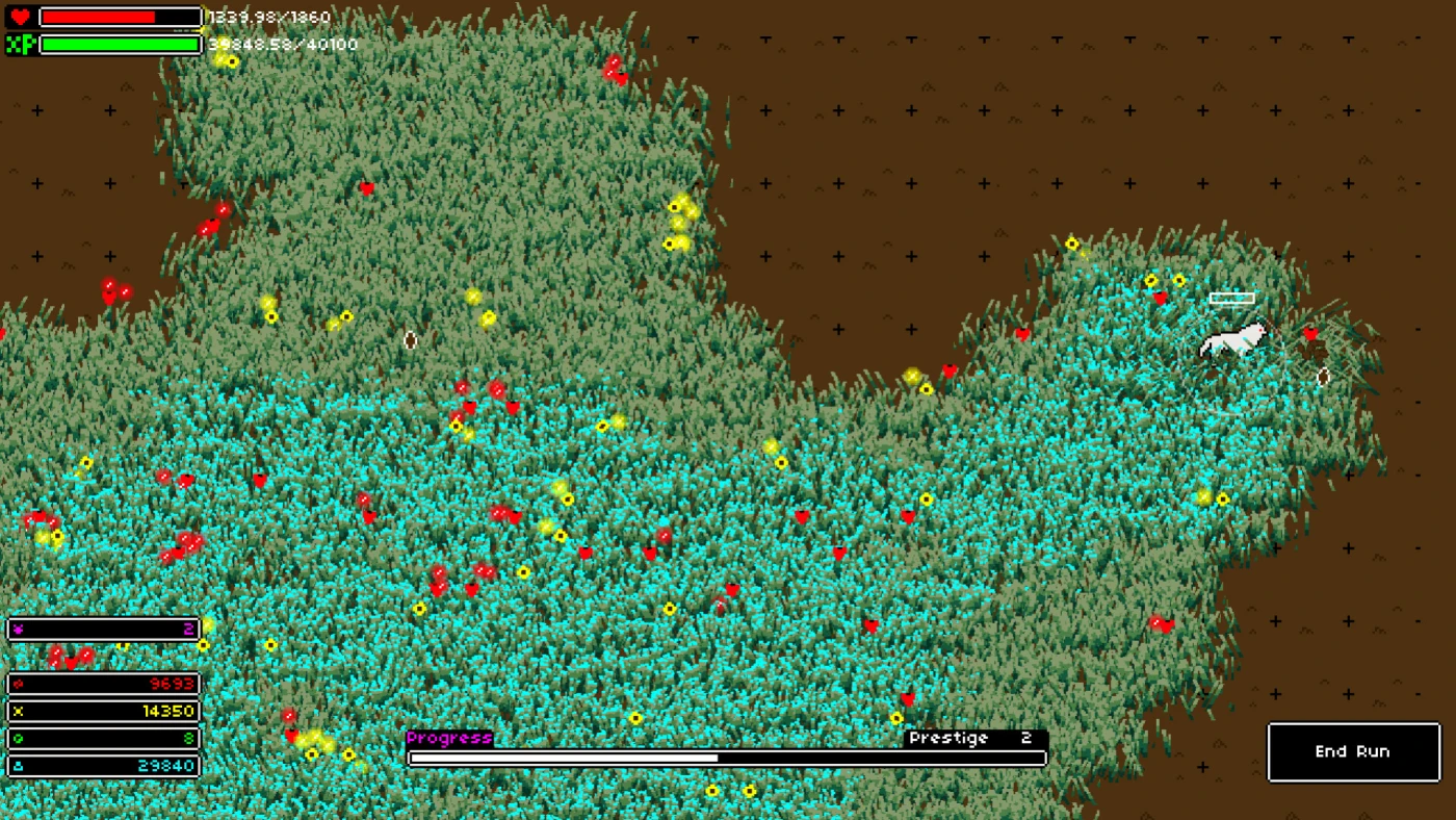 Lyca – медитативный инкрементальный симулятор, где вы играете за волшебного волка, оживляющего мёртвые земли. Каждый ваш шаг по иссушенной почве оставляет за собой травинки, а специальные атаки создают целые участки зелени. Но настоящая магия начинается, когда трава расцветает – тогда появляются ценные ресурсы: жёлтые точки от подсолнухов, красные от роз, а позже и таинственные фиолетовые кристаллы.