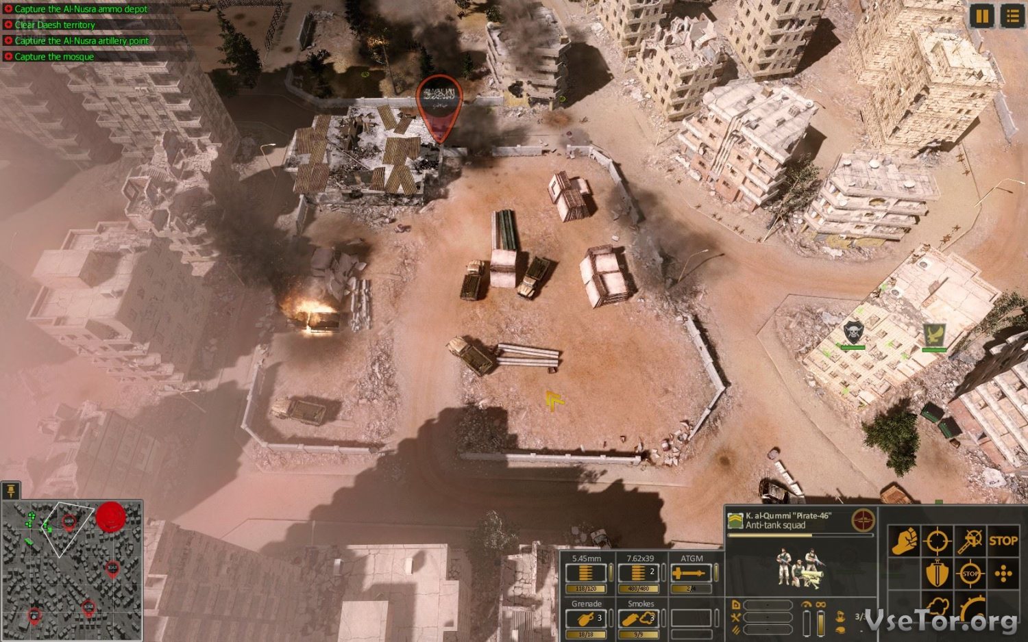 Геймплей же основывается на симуляции боевых действий. Вам придется набрать отряд бойцов, вооружить солдат и отправиться в бой, дабы отстоять свой город. Вам будут давать задания, в ходе которых вы должны будете занимать огневые позиции, отбивать наступление врага, захватывать здания, отстреливаться, устраивать диверсии и воевать всеми возможными способами. Притом, вы будете контролировать свой отряд буквально во всем: указывайте, какое здание занять и из какого оружия отстреливаться, куда кинуть дымовую гранату, в какую машину загрузиться и как именно доехать до новой точки назначения. В общем, в Syrian Warfare на вас будет лежать ответственно за все без исключения.