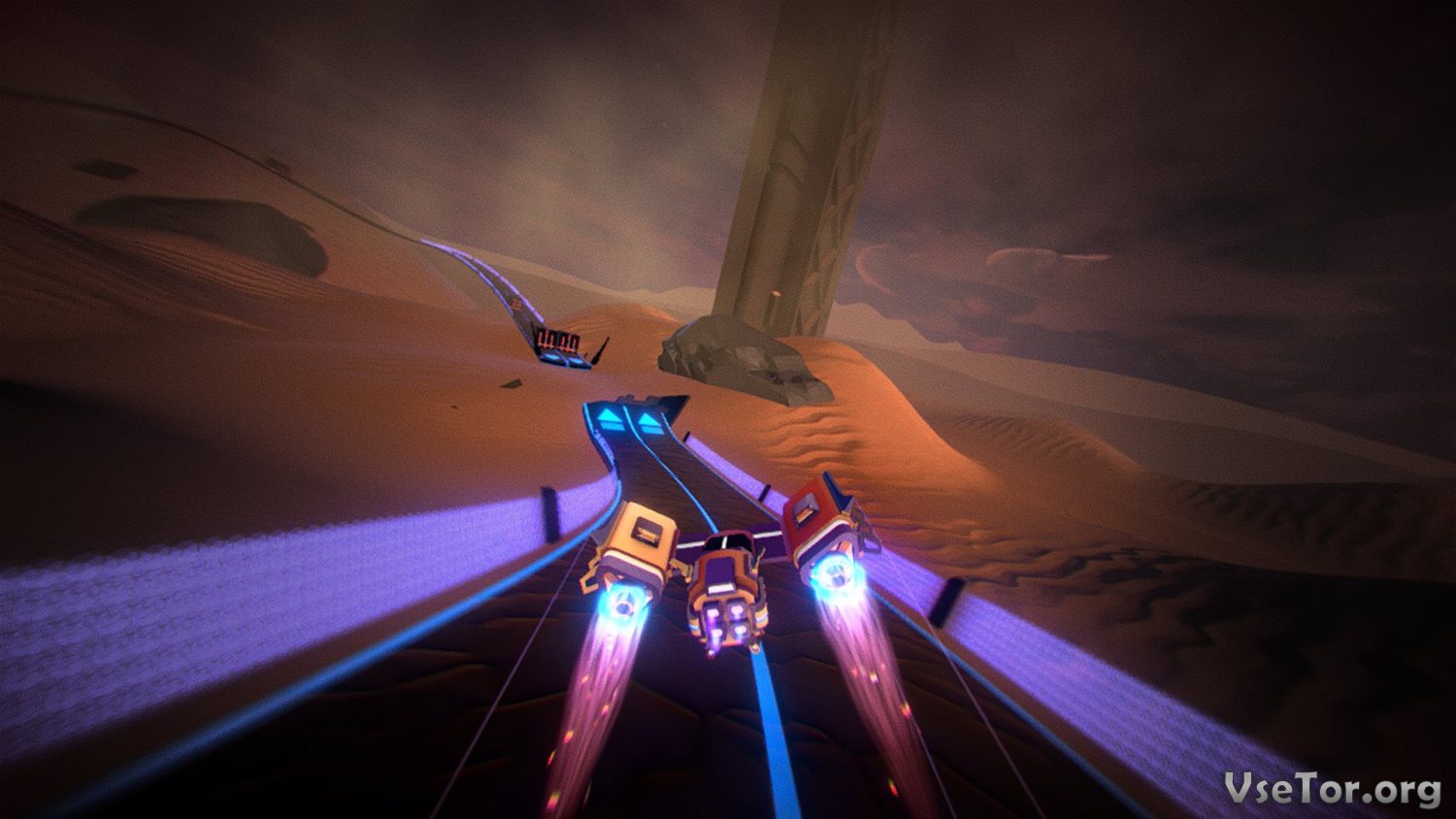 Что же касается самих гонок, так они в Stay Safe происходят на самых разных трассах. Где-то трасса проходит через город, а где-то она зависает и прямо в воздухе. Причем, на всех трассах расположены различные ловушки, преграды, обрывы и трамплины, которые нужно преодолевать. Но преодолеть все преграды не так уж и просто – ловушки и преграды расположены на трассах таким образом, чтоб игрок сильно помучился. Где-то придется задействовать логическое мышление и придумать какой-то хитрый ход, где-то нужно будет использовать реакцию, чтоб уклоняться от преград, а где-то и вовсе вас будут ждать такие трамплины, после которых болид попросту теряет управление. И таких вариантов предостаточно…